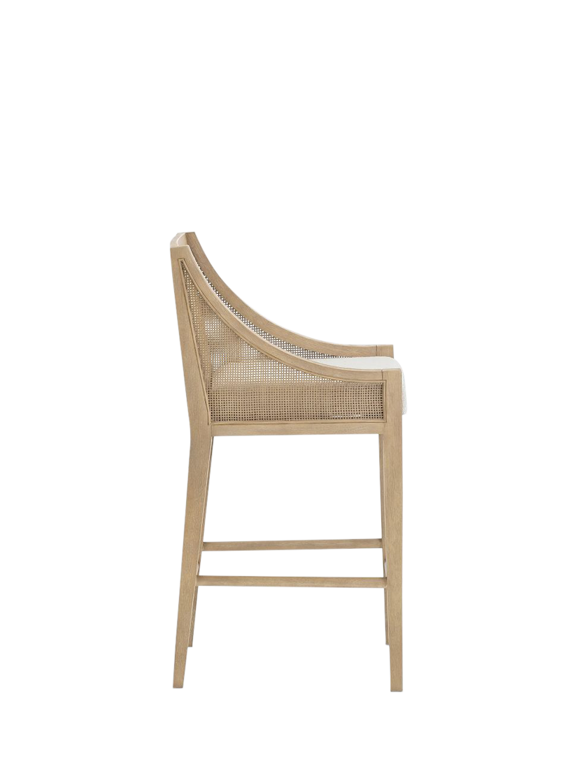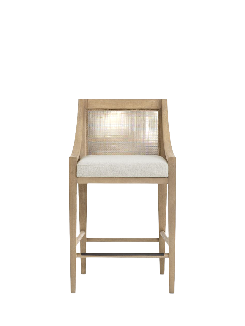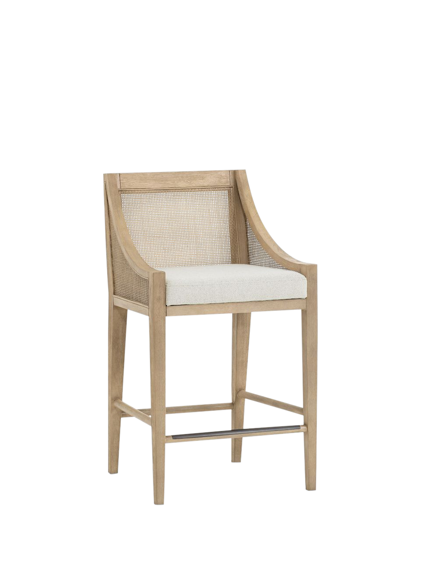 Natural cane, sloped arms and a clean-lined wood frame in a Seadrift finish offer an easy way to bring high-end style to a centre island or home bar.