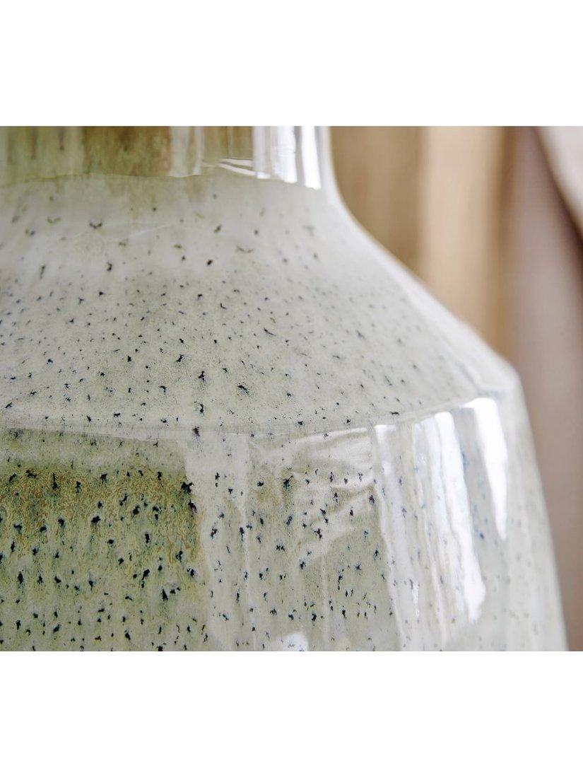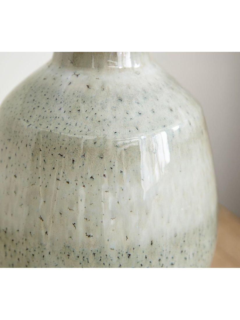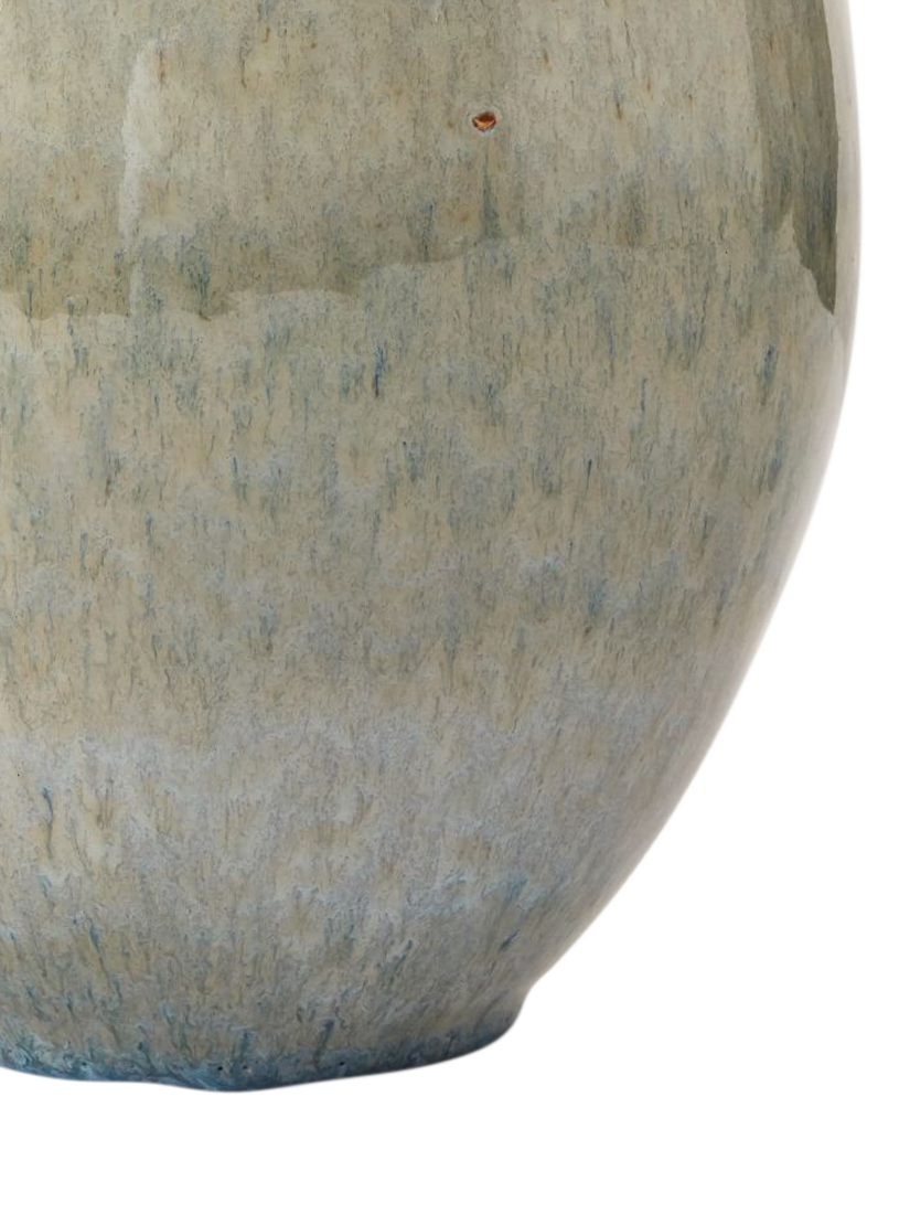 Artisanal craftsmanship and practical functionality unite on the striking Ezra accent lamp. Crafted from sturdy ceramic with gently curved contours, Ezra is finished by hand with a reactive glaze that imparts a rich, variegated hue and one-of-a-kind character.
