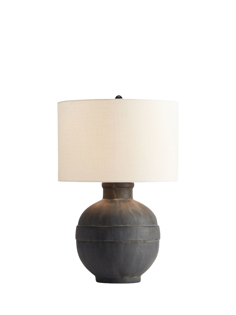 Variations along the edges and subtle markings add an almost antique feel to this table lamp, making each piece distinct. Crafted from clay and featuring a hand-painted finish, this piece boasts an easy-going, textured look. Comes with a straight-sided, textured gallery shade in Sand. Made by hand in a women-owned factory.
