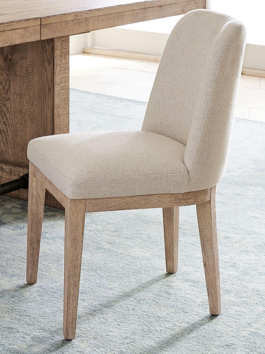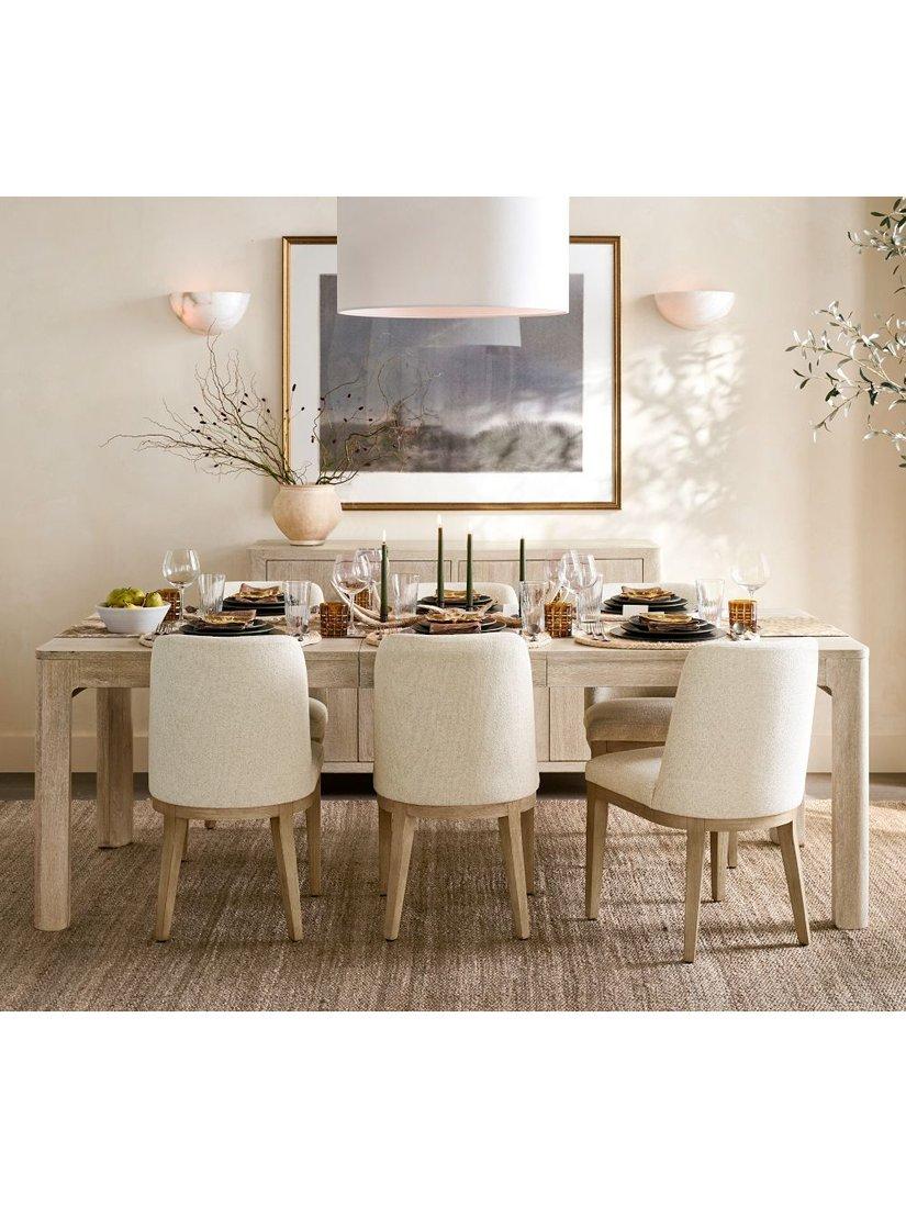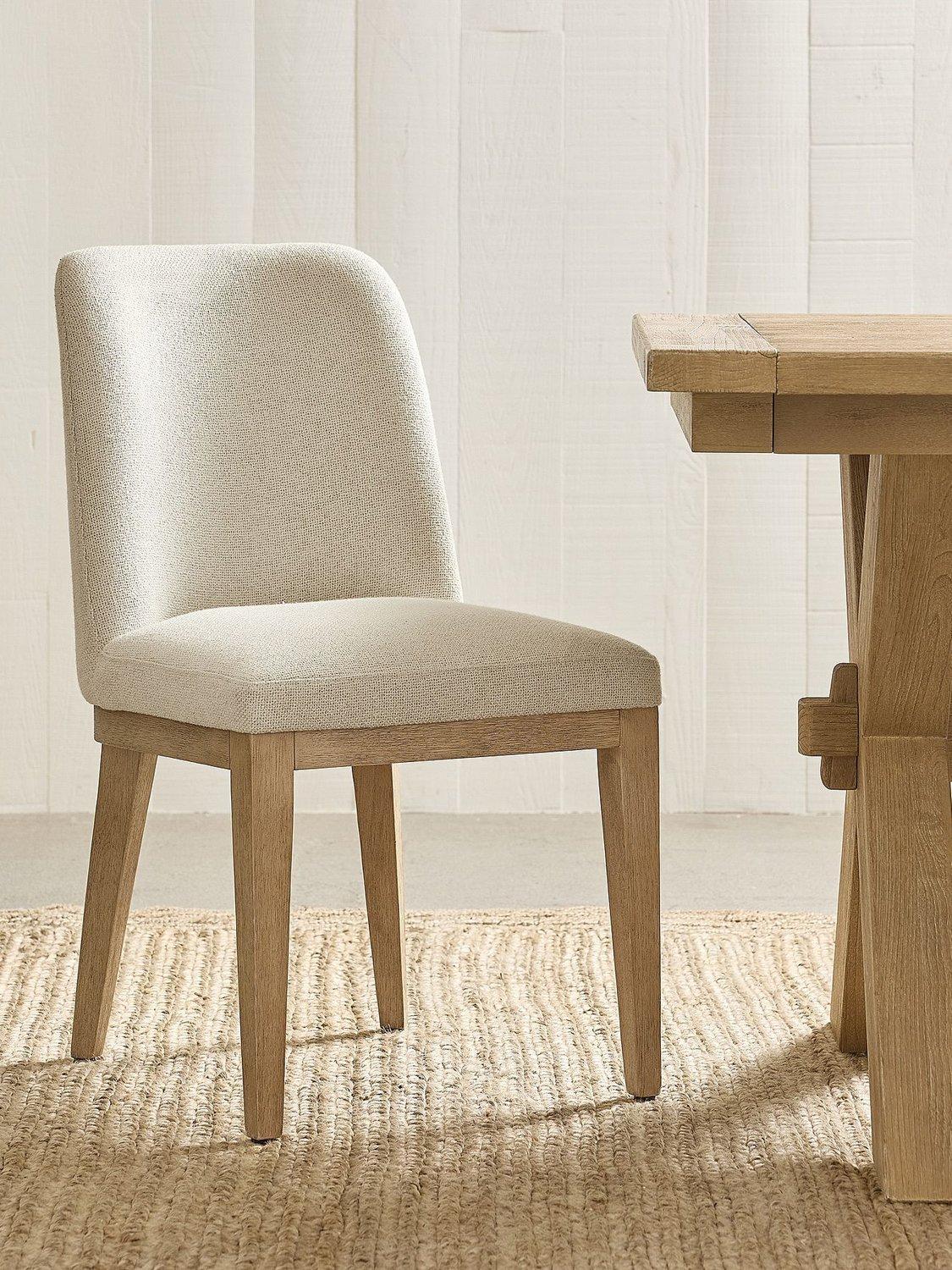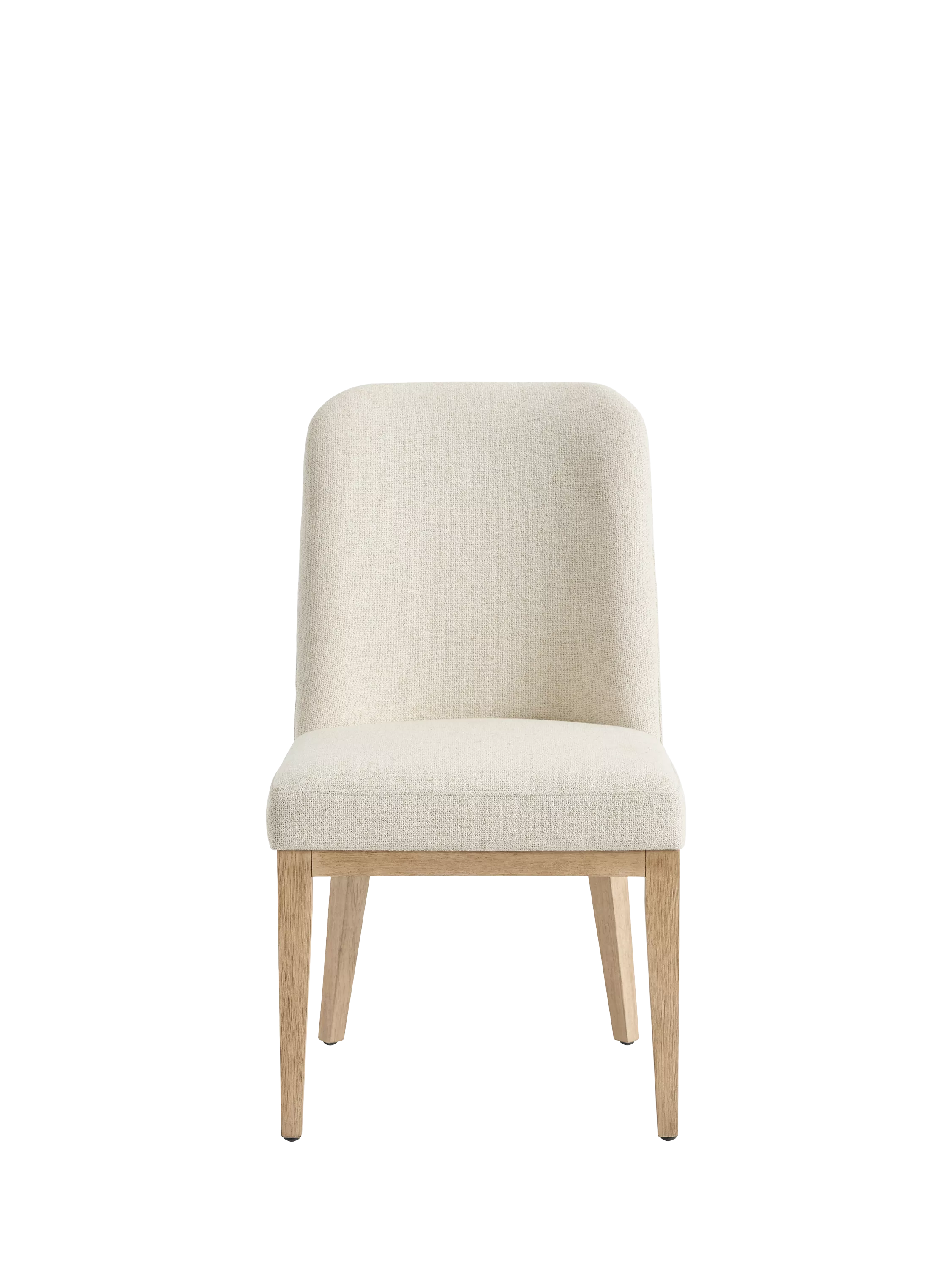 Relaxed yet refined, Layton balances tailored upholstery with the rustic warmth of wood. We love the look of its curved backrest, which envelopes you in comfort. The open-back design looks chic but also helps to avoid crumb catching. It's crafted from a sustainably harvested and highly durable hardwood.