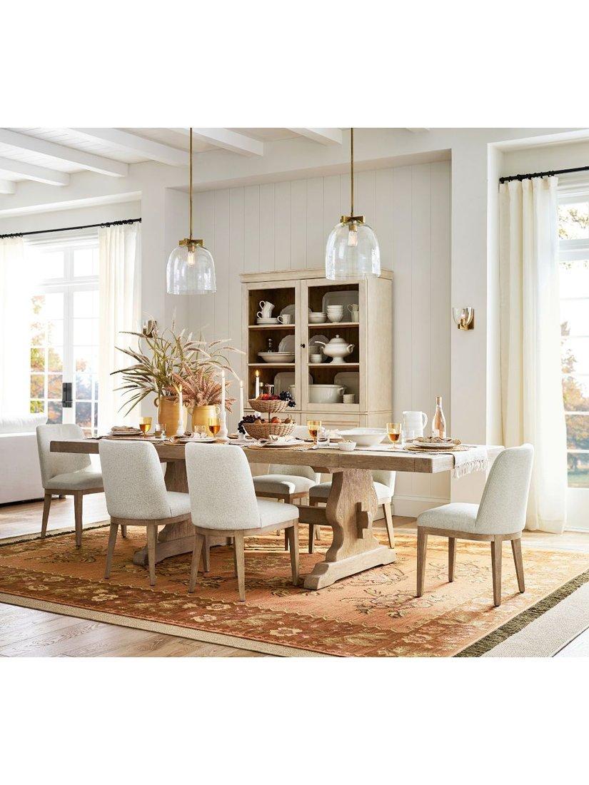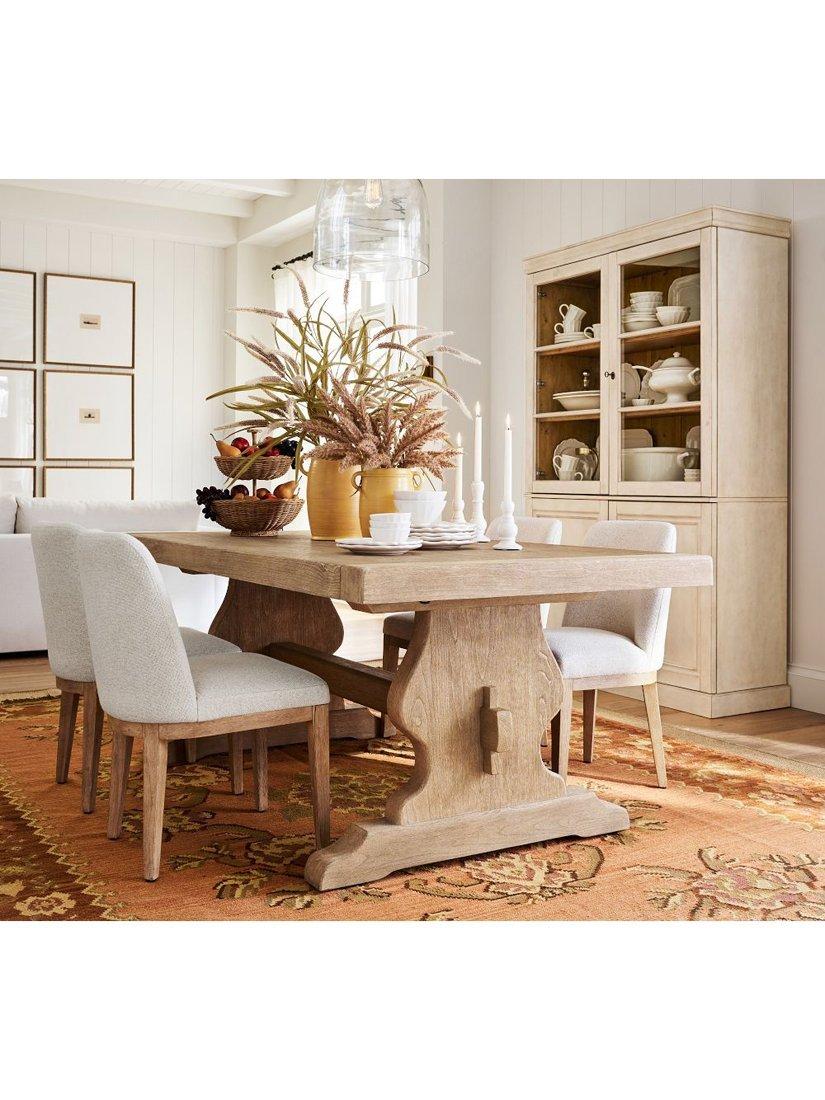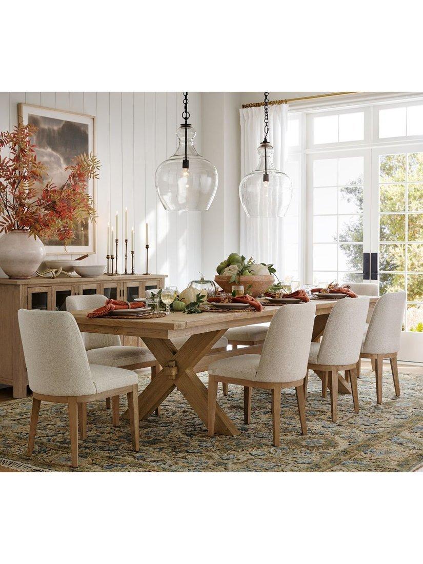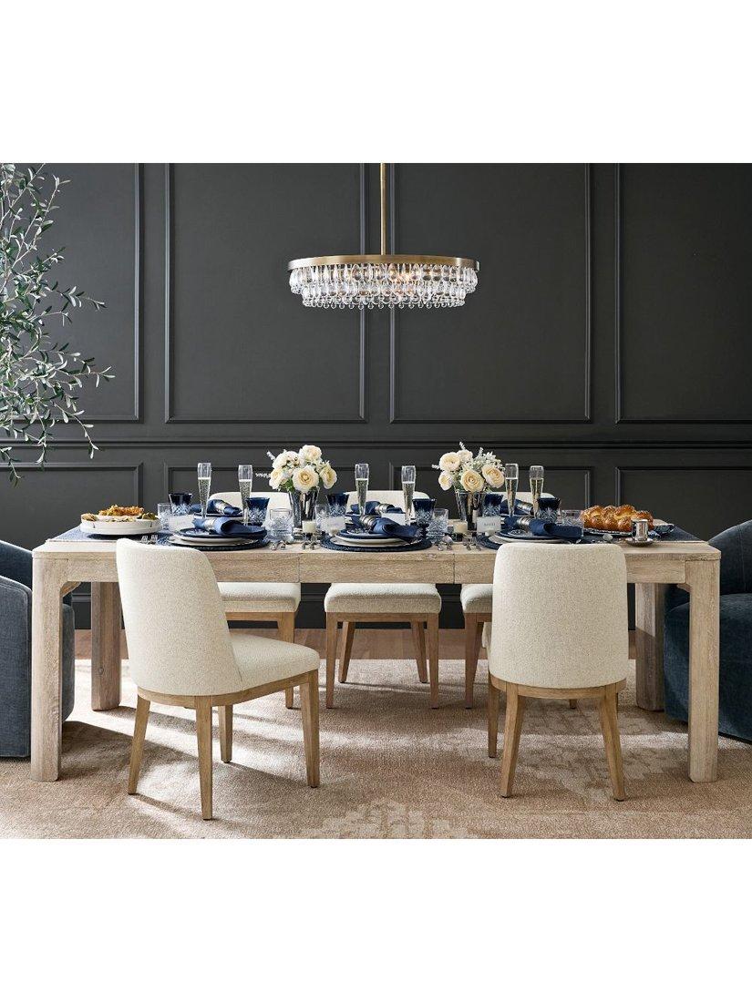 Relaxed yet refined, Layton balances tailored upholstery with the rustic warmth of wood. We love the look of its curved backrest, which envelopes you in comfort. The open-back design looks chic but also helps to avoid crumb catching. It's crafted from a sustainably harvested and highly durable hardwood.