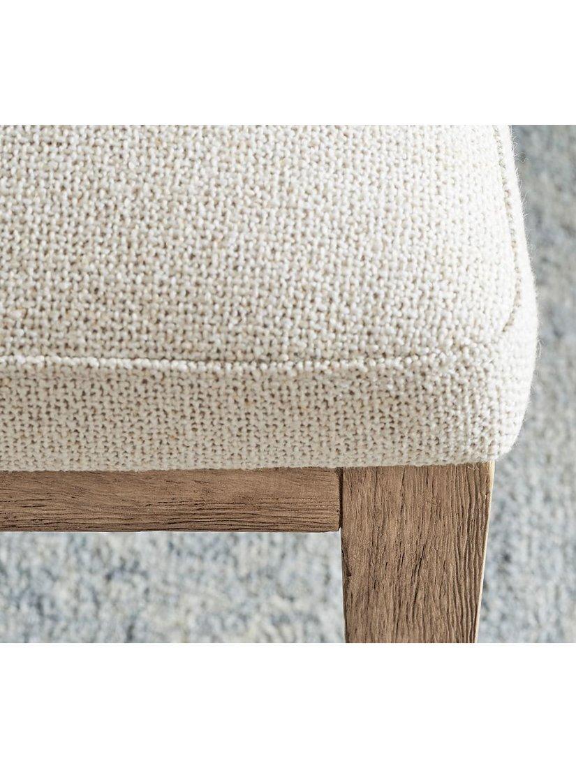 - Frame: Solid oak wood and engineered wood; Upholstered in Performance Boucle fabric. Fabric: 60% Recycled Poly, 35% Poly, 5% Linen.