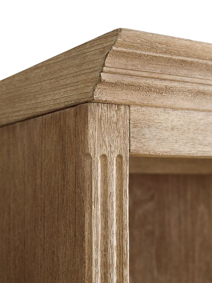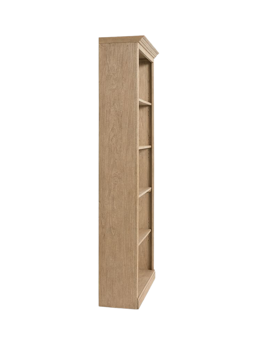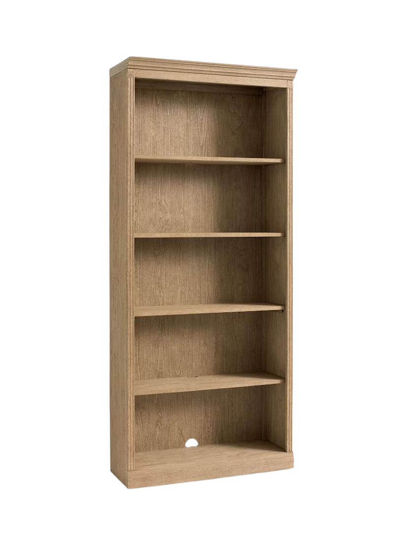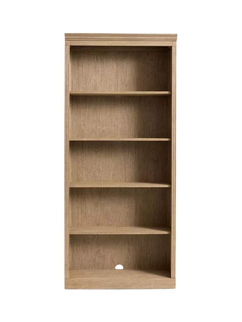 The Livingston Bookcase offers timeless appeal with its classic design details, including elegant crown moulding and fluted posts. Resting securely on a plinth base, the frame is constructed using dowel construction for added strength, and the piece features a beautiful, hand-applied Seadrift finish, lending it a sophisticated look that works perfectly in any living area or workspace.