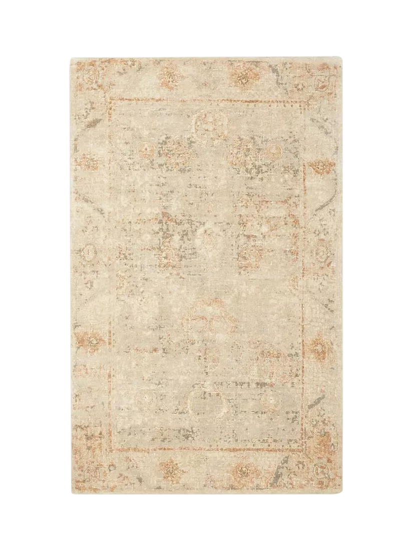 Nahla’s blend of warm hues and patinaed pattern evokes the look of an antiqued carpet. The hand-tufted yarns are looped and sheared, bringing definition and a textured feel to the design. Style this in a bedroom or make it the grounding layer to your living space.