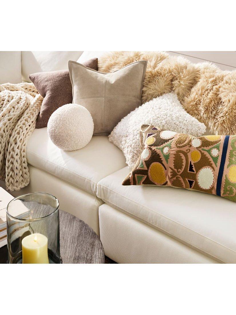 Crafted from suede with a decorative topstitch, this cover adds a stylish accent wherever you need a little extra texture. We love how the solid backing offers two looks in one.