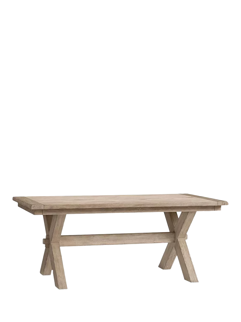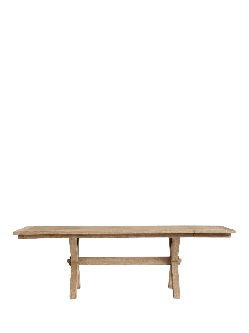 Inspired by authentic Italian farmhouse furniture, Toscana has an exclusive Seadrift finish that imparts a timeless, weathered appearance. Trestle supports and keyed-through tenons give it a rustic look, while eased edges maximise legroom and serving space. With two drop-in breadboard leaves at either end, this table is ideal for large gatherings.