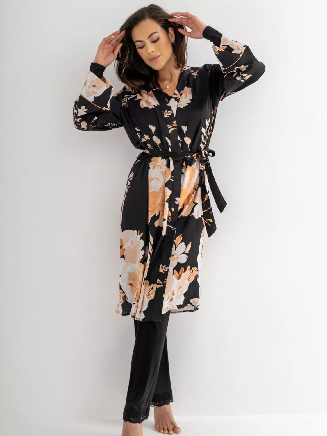 Wrap yourself in pure elegance with the Dusk Printed Satin Midi Dressing Gown. Made from glossy, swoon-worthy satin, this dreamy number is your shortcut to instant glamour.