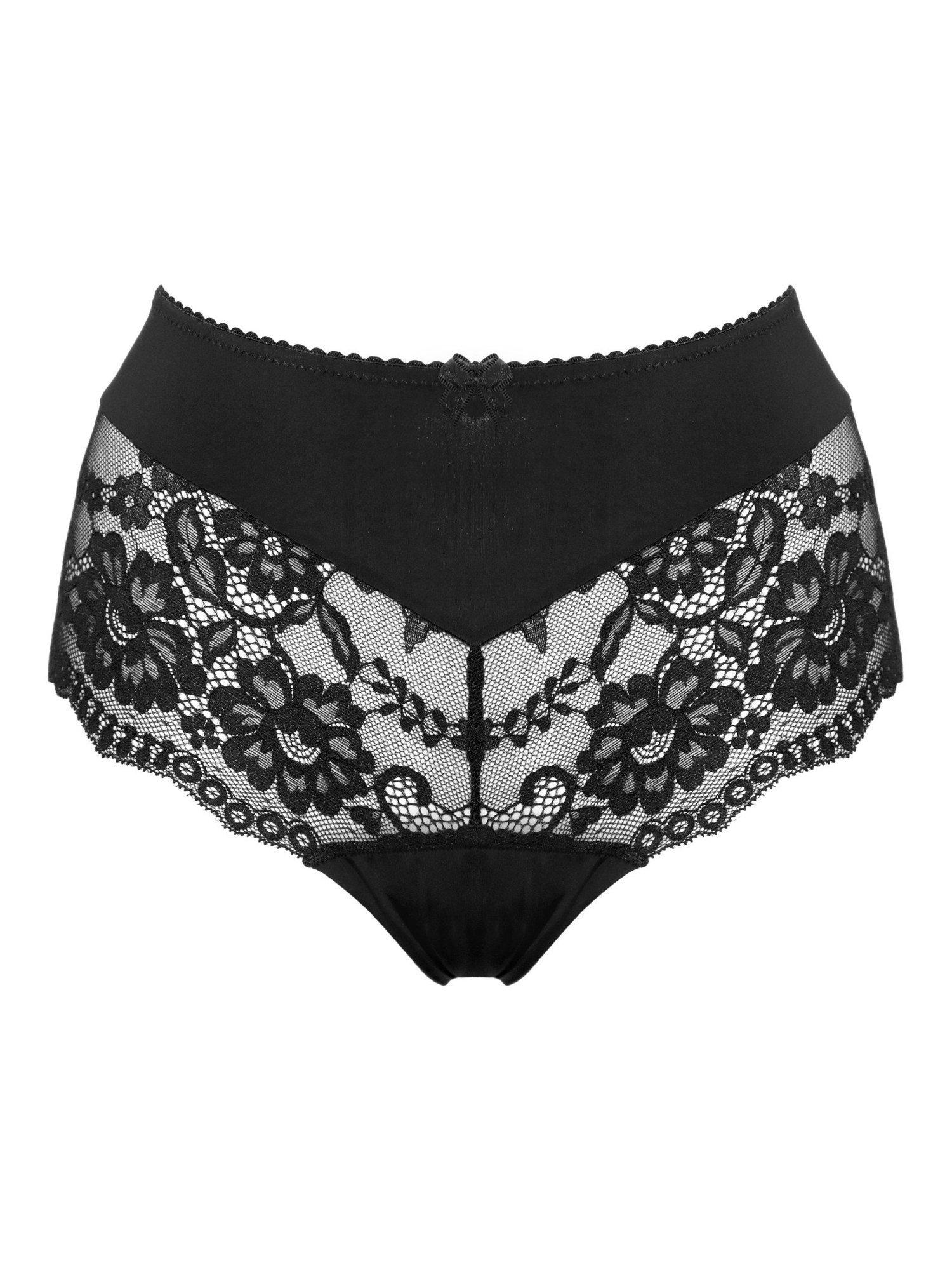Adorn yourself in the exquisite beauty of floral lace with scalloped edging and contemporary ladder detailing adding a touch of romance to your lingerie collection. Featuring decorative elastics, microfibre front and back inserts, and a cotton-lined gusset, the Fleur Shorty provides the perfect blend of softness and support, ensuring comfort throughout the day. These full-coverage knickers are finished off beautifully with lace front and back leg panels and feature a decorative trinket bow at the centre front.