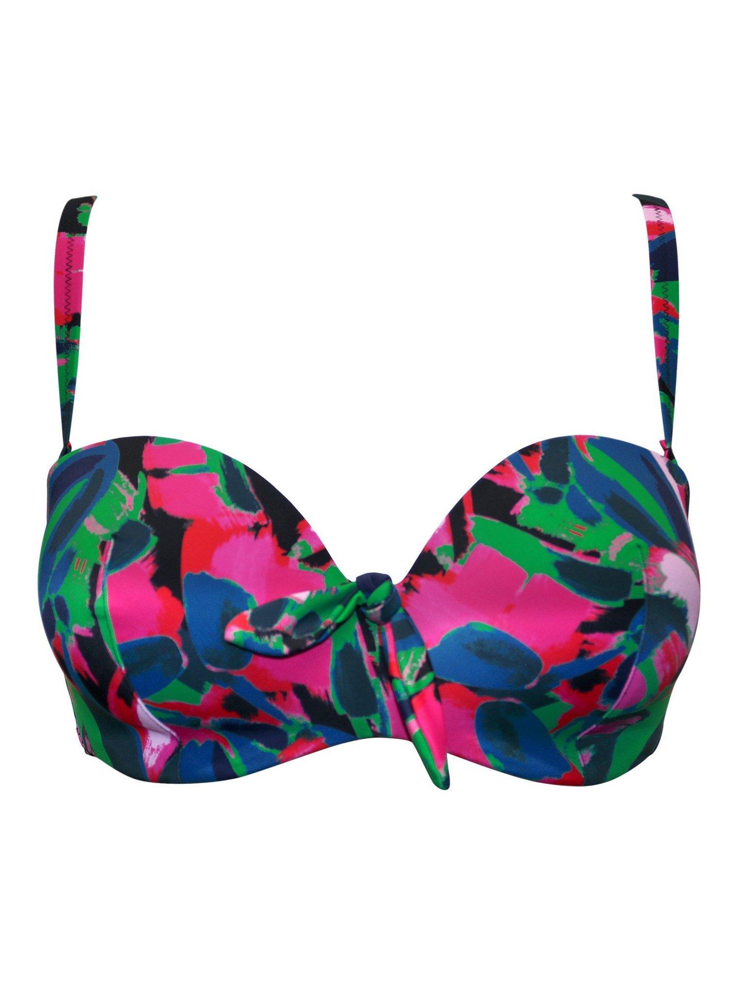 Worn strapless, this bikini top is ideal for tanning, or with straps for a little more support, this underwired bikini has light padding to mould and accentuate your shape. Like all of Pour Moi's strapless bikinis, it gives great uplift and features a clasp to the back and a bow detail to the centre front.