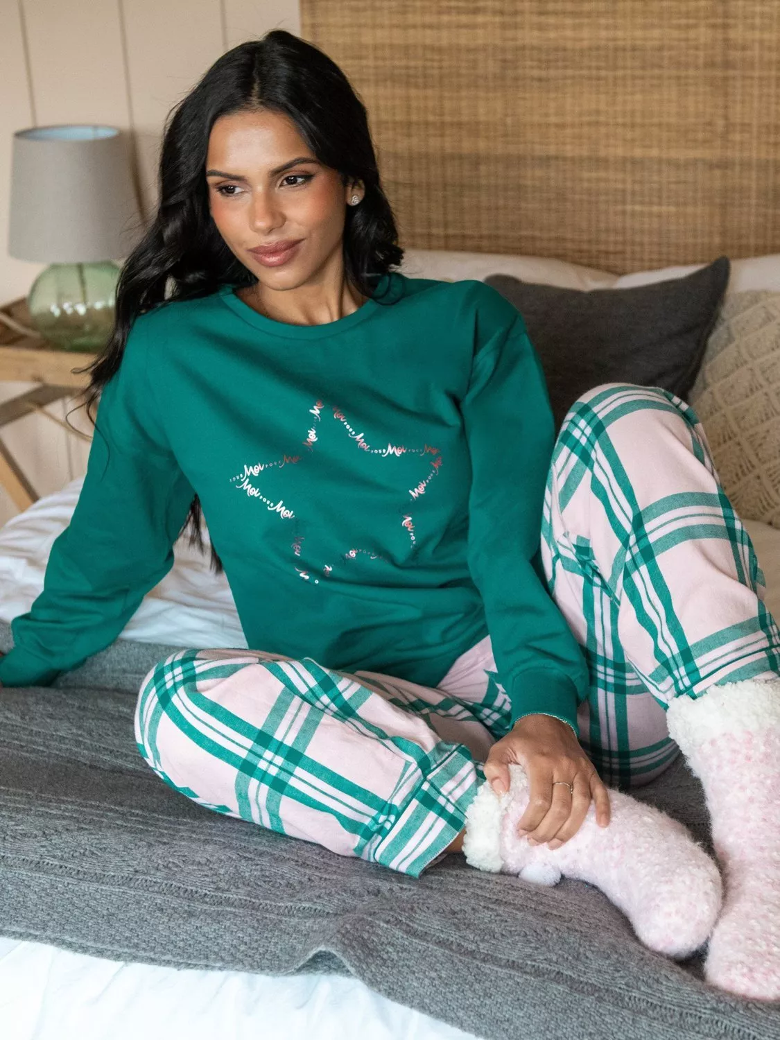 Settle down in comfort and style with the Pour Moi Logo Sweatshirt Cosy Check Pyjama Set.