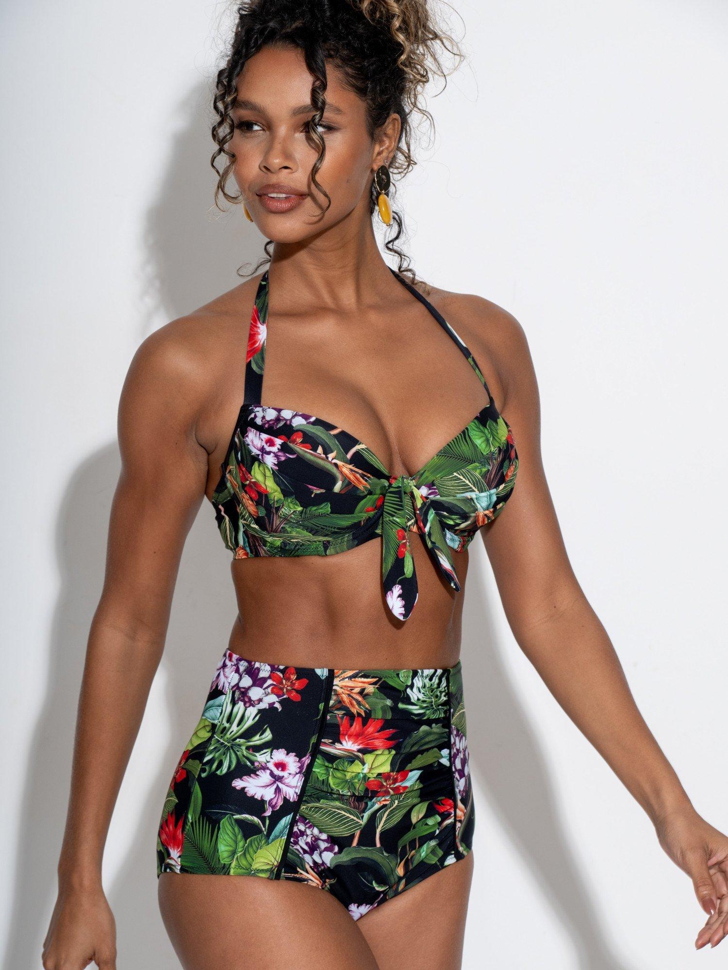 Featuring padded, pleated cups for a flattering shape, this underwired bikini top with a halter neck tie offers all the support, lift and comfort you could ever need. Made from super soft, luxe shine fabric, this bikini top, designed for DD and up cup sizes features a flattering tie detail at the centre front. With a back clasp fastening, pair this supportive bikini top with matching pieces from the Palermo collection.