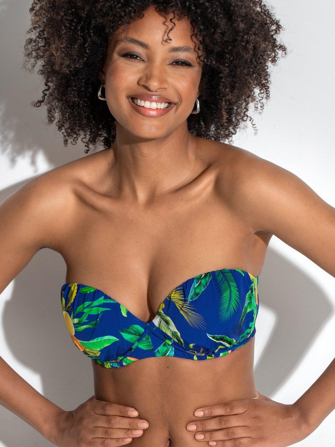 Designed in a flattering bandeau style this bikini top features an underwired and lightly padded balconette shape for subtle lift and support. With flattering ruching details on the cups, the Santa Cruz Strapless Lightly Padded Underwired Bikini Top features a back clasp fastening for a secure fit. Designed for fuller busts, this DD+ cup-sized bikini top offers the perfect balance of comfort and style. Pair with matching pieces from the Santa Cruz collection for a must-have swimwear look.