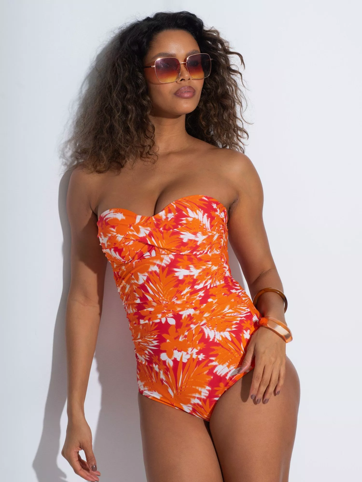 Designed with adjustable and removable straps, this swimsuit features a hidden control panel and hidden shelf support to sculpt your curves. With moulded cups and ruching at the front, you'll feel safe and secure as you brave the waves this summer.
