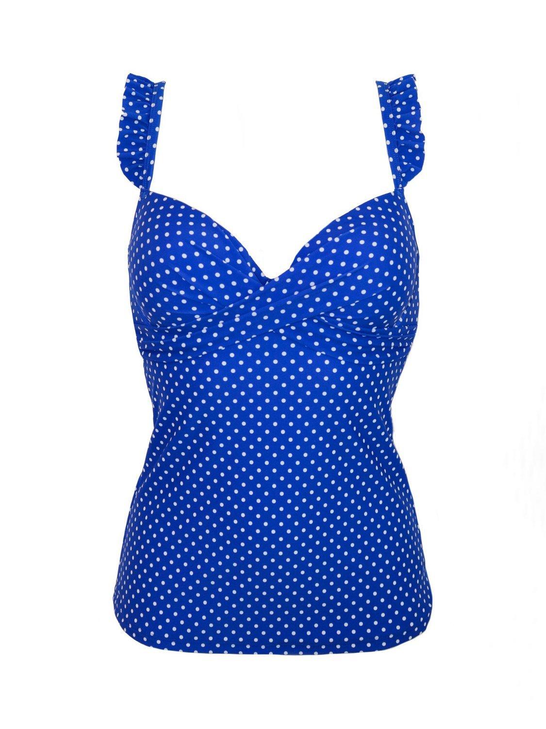 Featuring underwiring, fully adjustable straps and a convenient back clasp for a supportive fit and style, the Sicily tankini top features padded cups for a gentle and subtle lift. With chic twist front detailing and playful frills on the straps that enhance the overall charm of this beautiful tankini top.