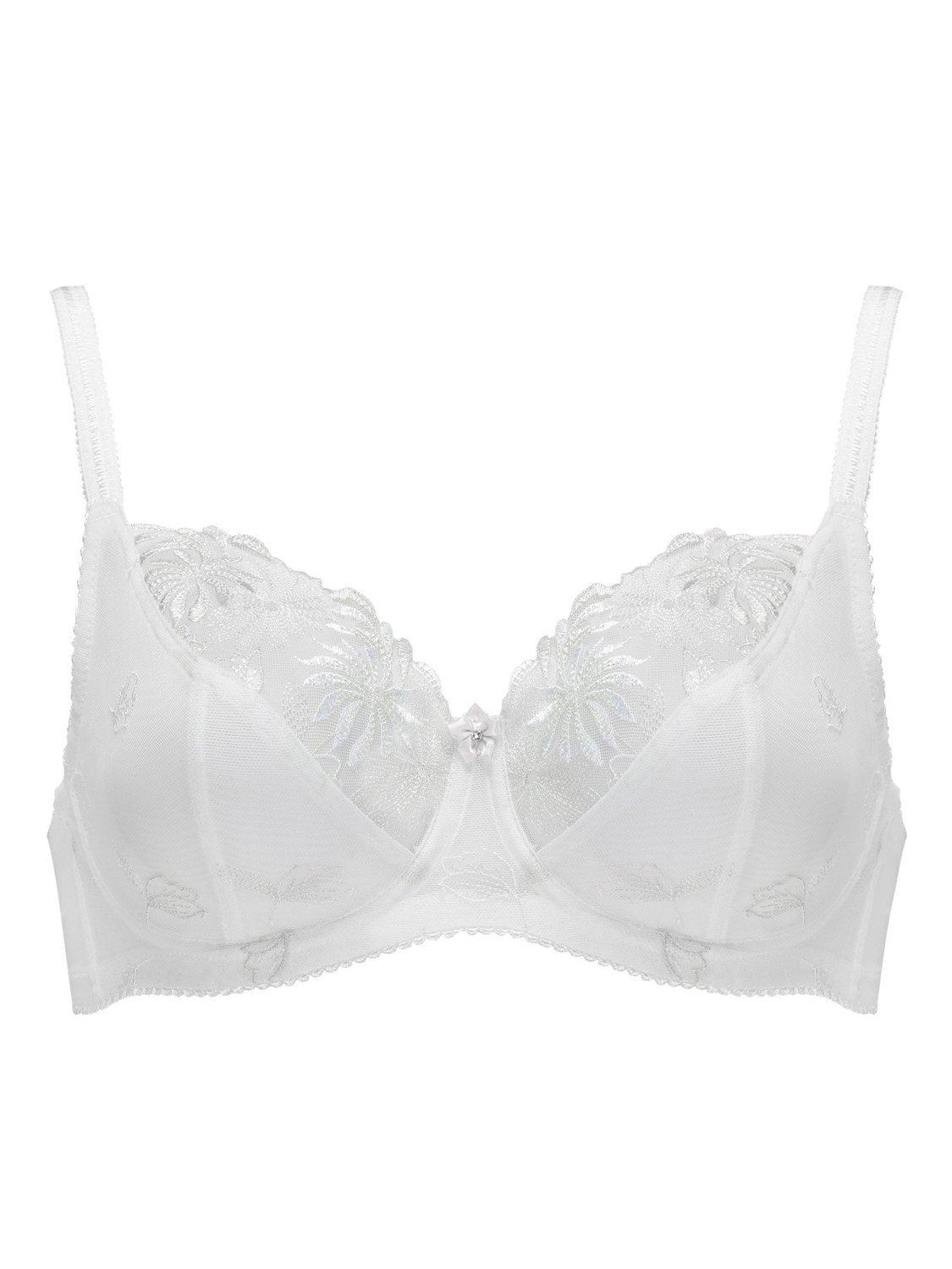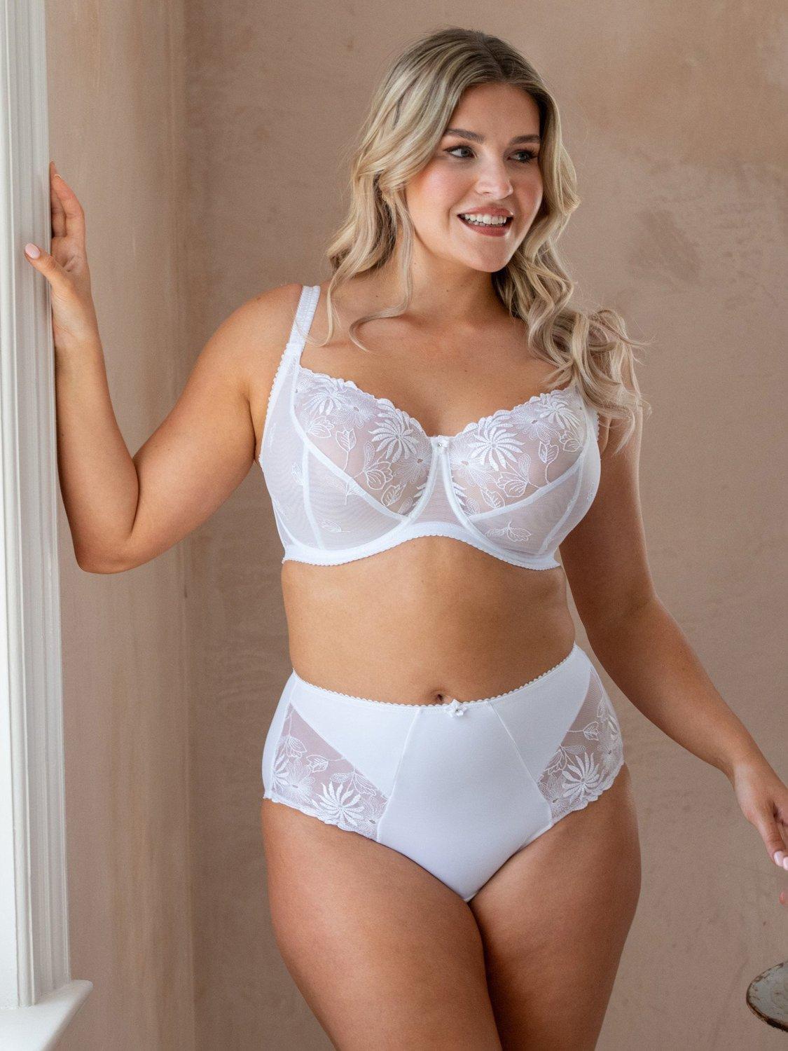 The St Tropez bra is one of Pour Moi's best-selling styles. This full cup style features firm mesh and floral embroidery with underwiring for support. Its soft scalloped edging beautifully decorates the cups and it's finished with a pretty satin bow to the centre front. If you're looking for a super-supportive and understated bra, then this is the one for you.