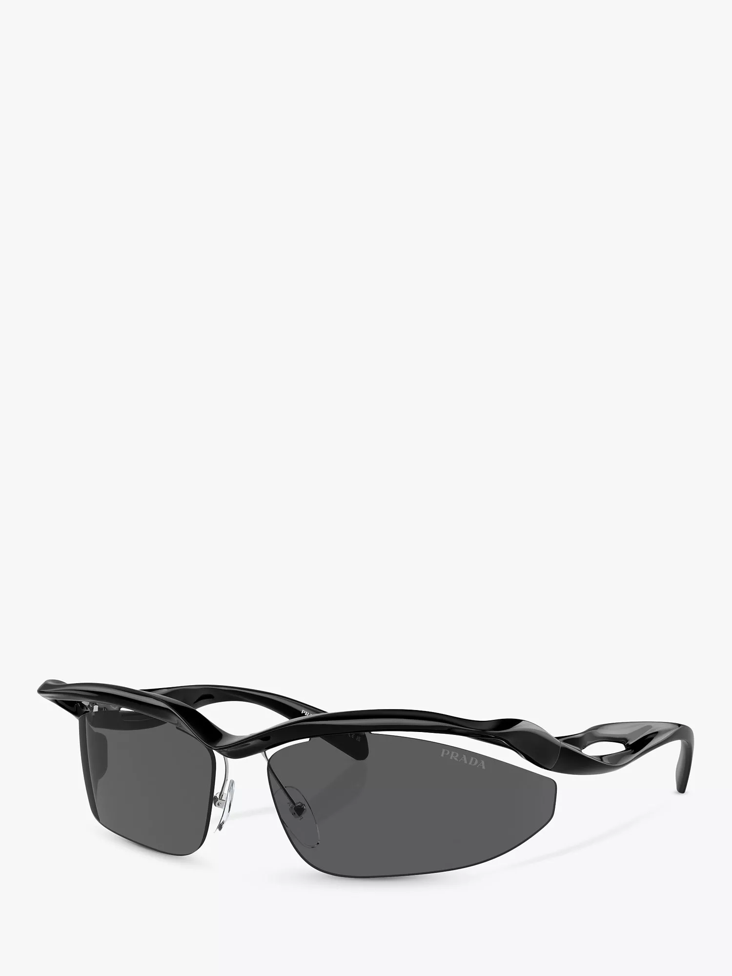 In a bold asymmetrical shape, these women's sunglasses are designed by Prada.