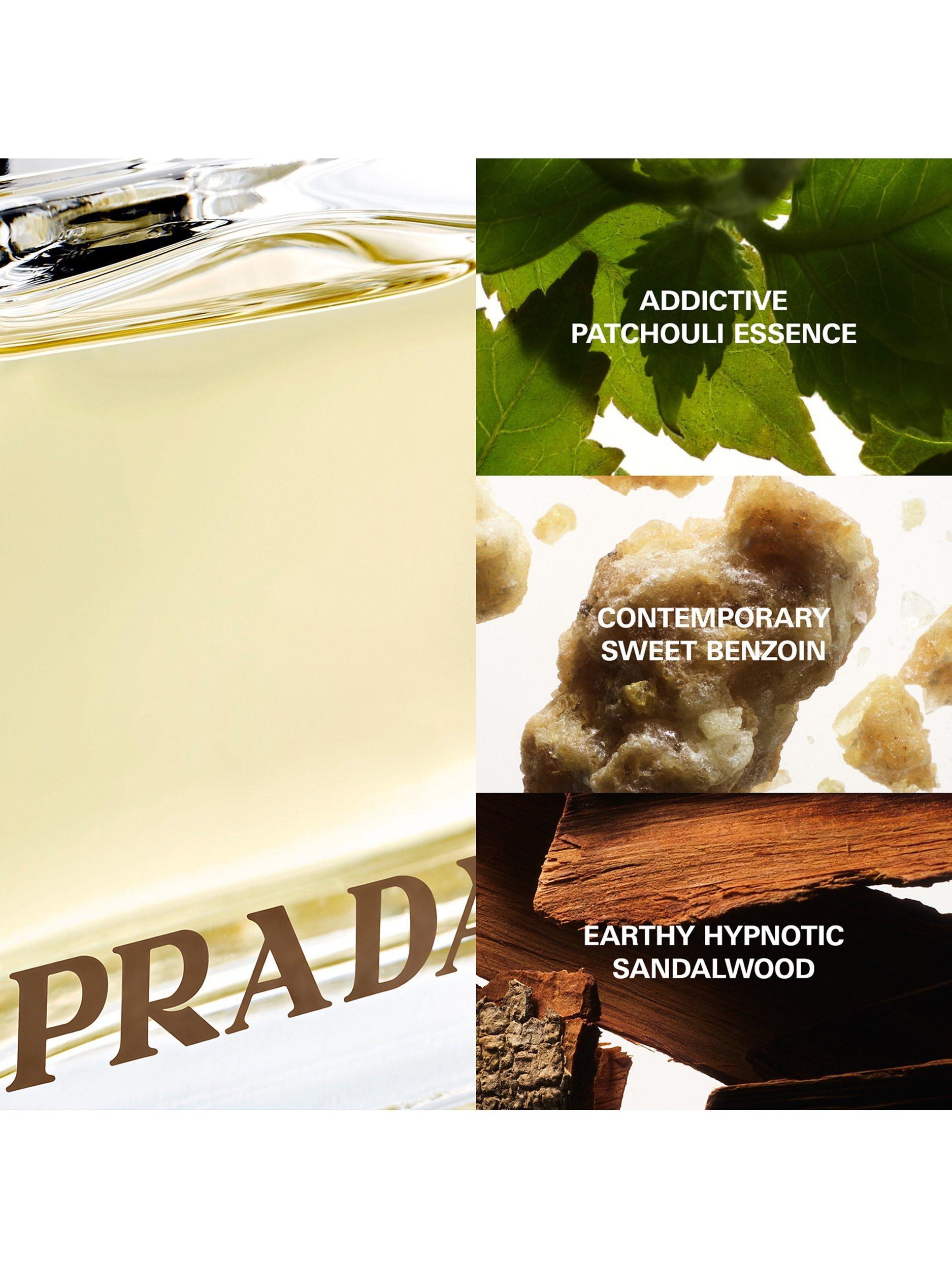 The first Prada fragrance brings forward the tradition of perfumery by updating this craftsmanship with an innovative approach to scent blending. It embodies classic femininity with a modern sensibility. A fusion of innovation and quality is re-interpreted through the engraved metal plaque bottle and the hypnotic Amber notes such as sandalwood from India, patchouli from Indonesia, labdanum from France and benzoin from Siam.