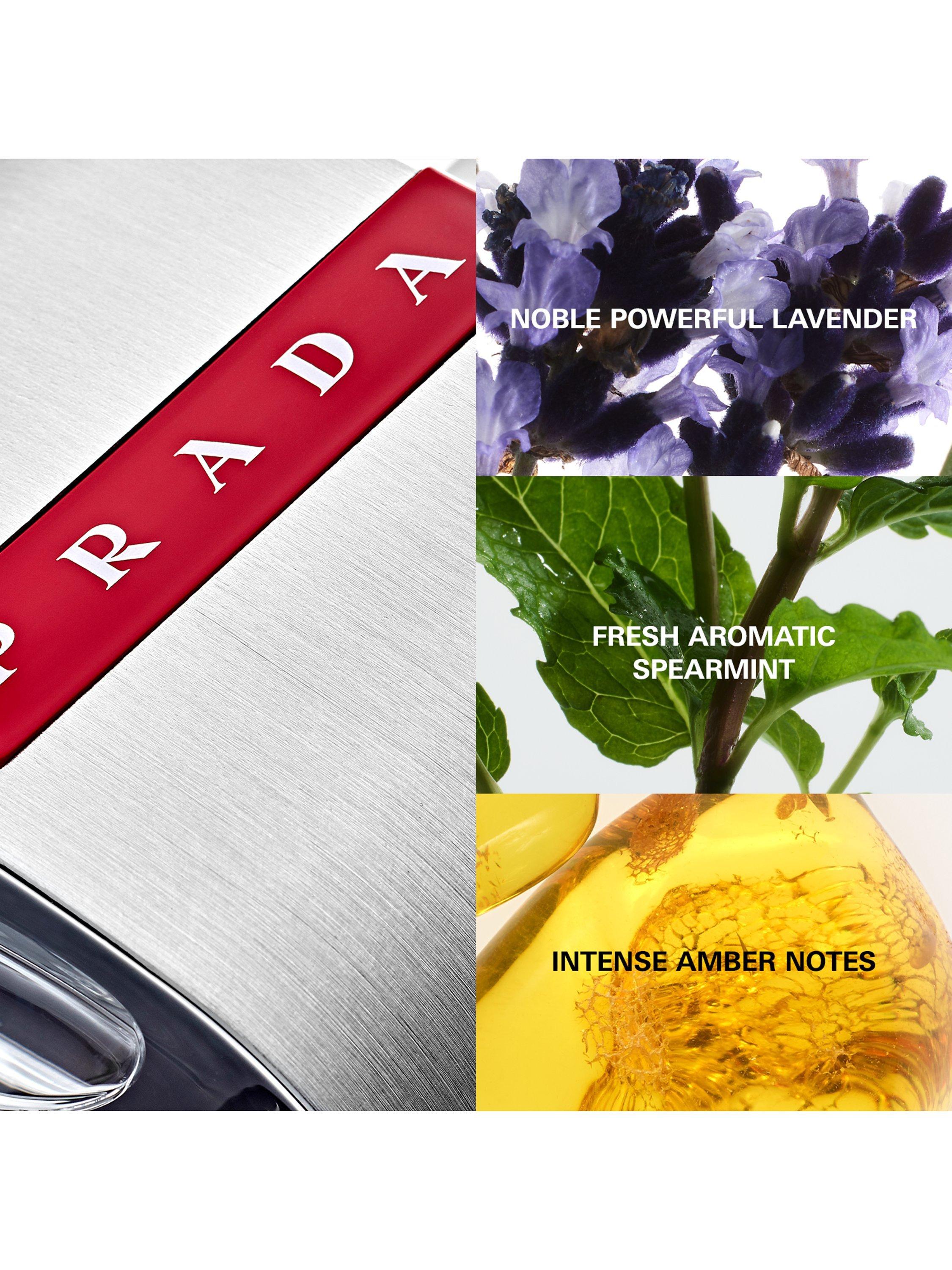 Discover Prada Luna Rossa Eau de Toilette; a powerfully refreshing, energising masculine scent, re-interpreting traditional ingredients with agility. Luna Rossa opens with light and refreshing notes of spearmint, before transcending into a floral heart of re-imagined lavender. Aromatic and woody, this classic, male fragrance then settles into a warm amber base, creating a sense of pure indulgence and luxury.