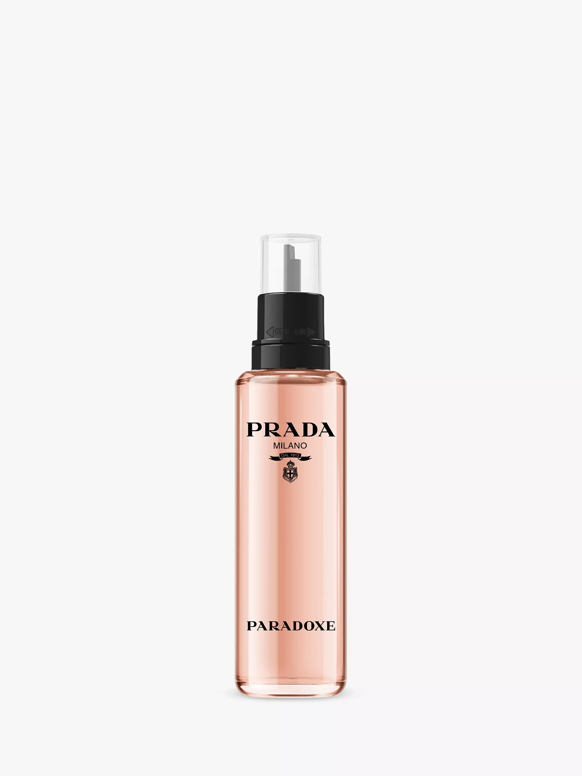 The iconic Paradoxe refill bottle: Encapsulating the very essence of Prada, the refillable Paradoxe bottle reinvents the most iconic code of the brand, the triangle logo. Feminine, yet disruptive. Unique, yet immediately recognisable. Sophisticated, yet sustainable.