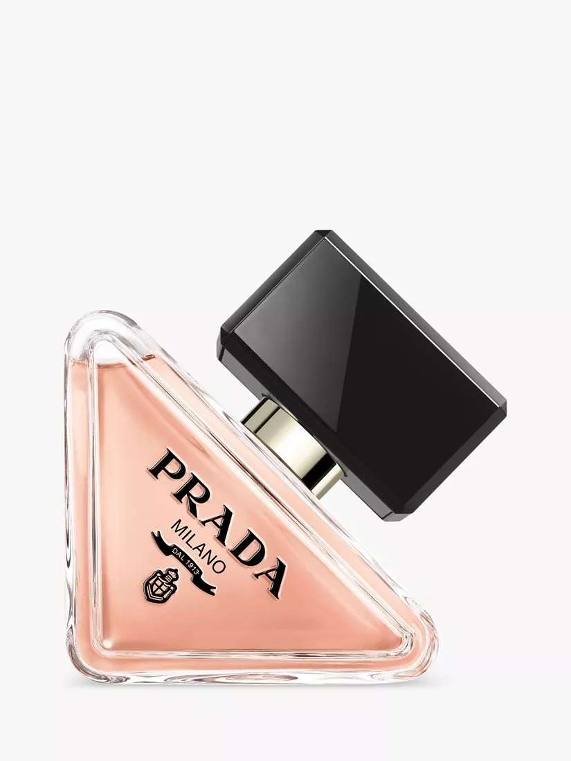 The iconic Paradoxe bottle: Encapsulating the very essence of Prada, the refillable Paradoxe bottle reinvents the most iconic code of the brand, the triangle logo. Tilted yet powerfully grounded, the iconic shape of the bottle is softened with rounded angles, while the delicate coral pink colour of the fragrance contrasts with the deep black Prada coat of arms. Feminine, yet disruptive. Unique, yet immediately recognisable.