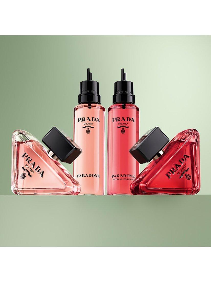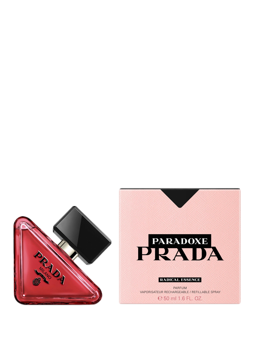 Paradoxe Radical Essence, the new feminine fragrance by Prada. This new signature rethinks gourmand scents with the most addictive Paradoxe: a concentration of unexpected gourmand notes in a sophisticated Parfum.