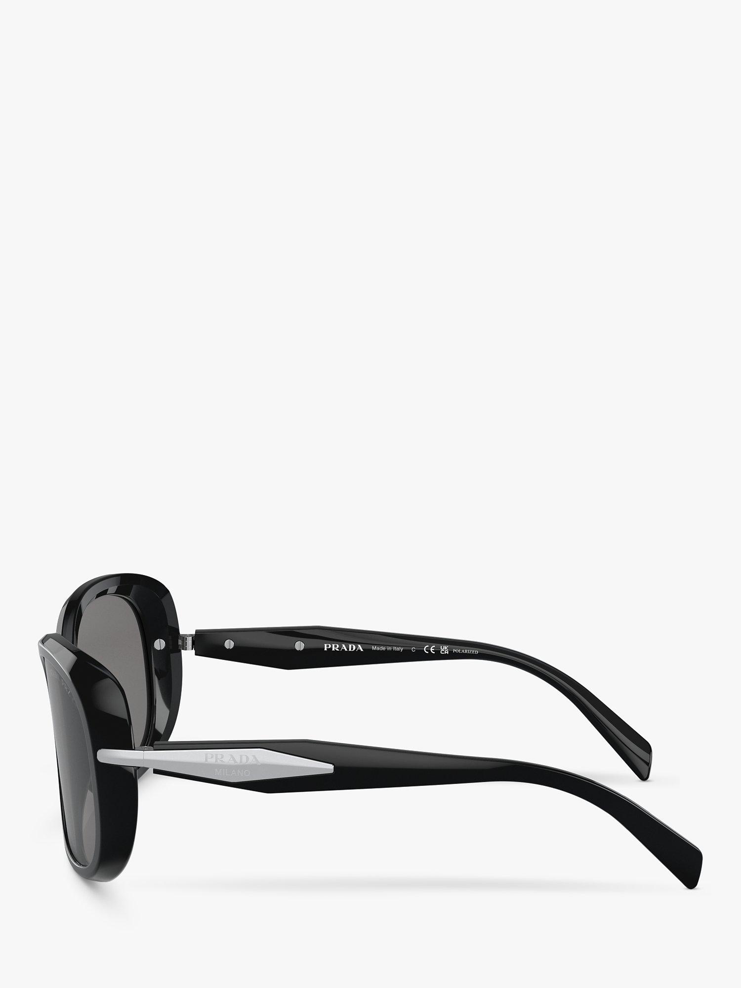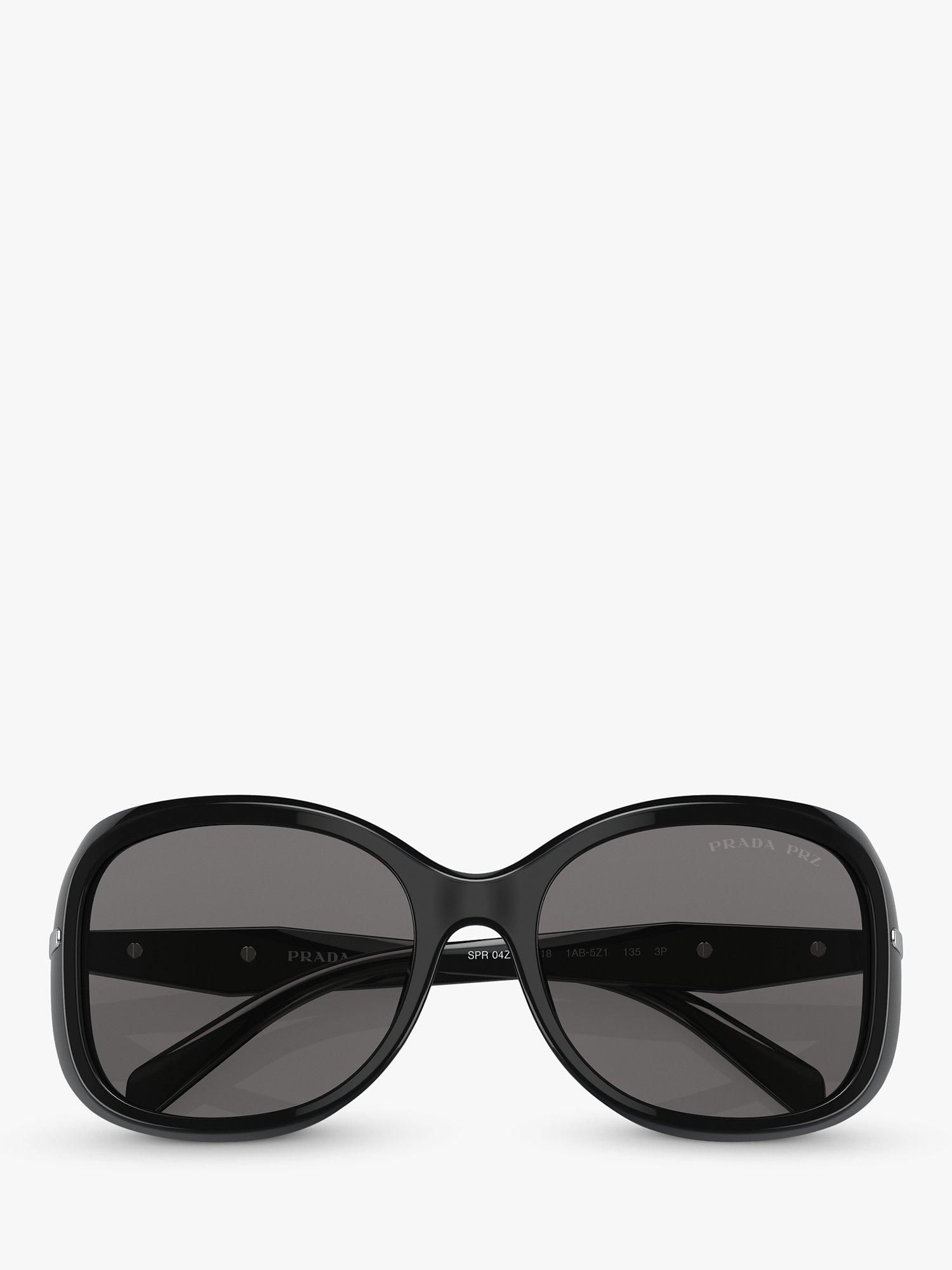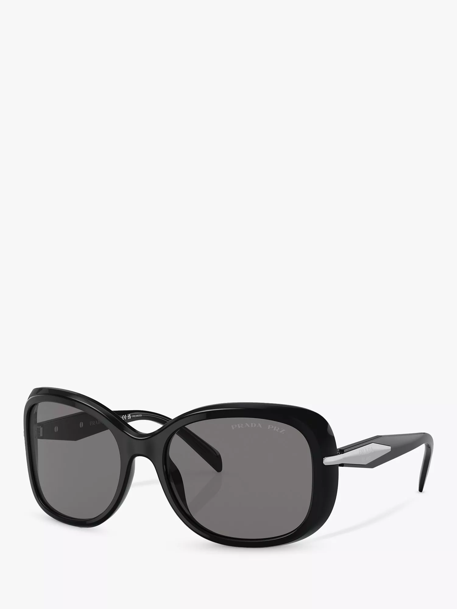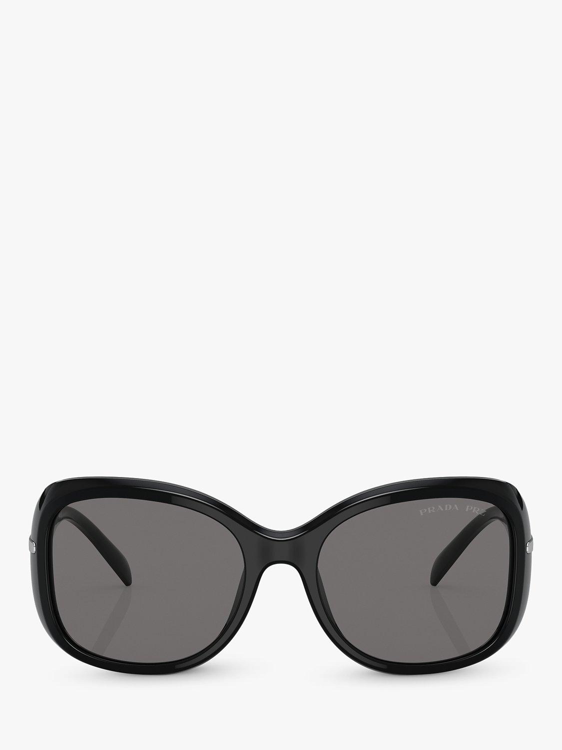 PradaPR 04ZS Women's Polarised Rectangular Sunglasses, Black/Grey
