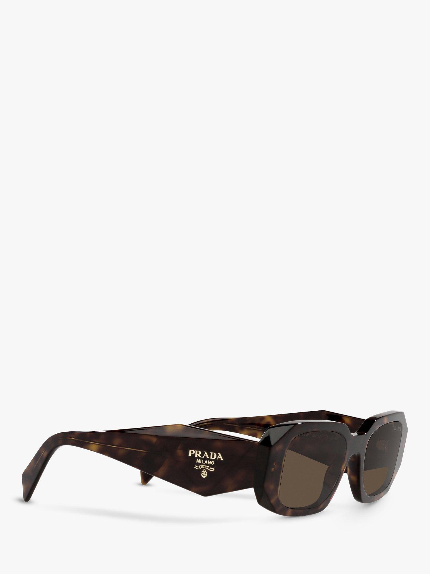 Forming a rectangular shape, this pair of tortoiseshell sunglasses by Prada brings character to a round face.