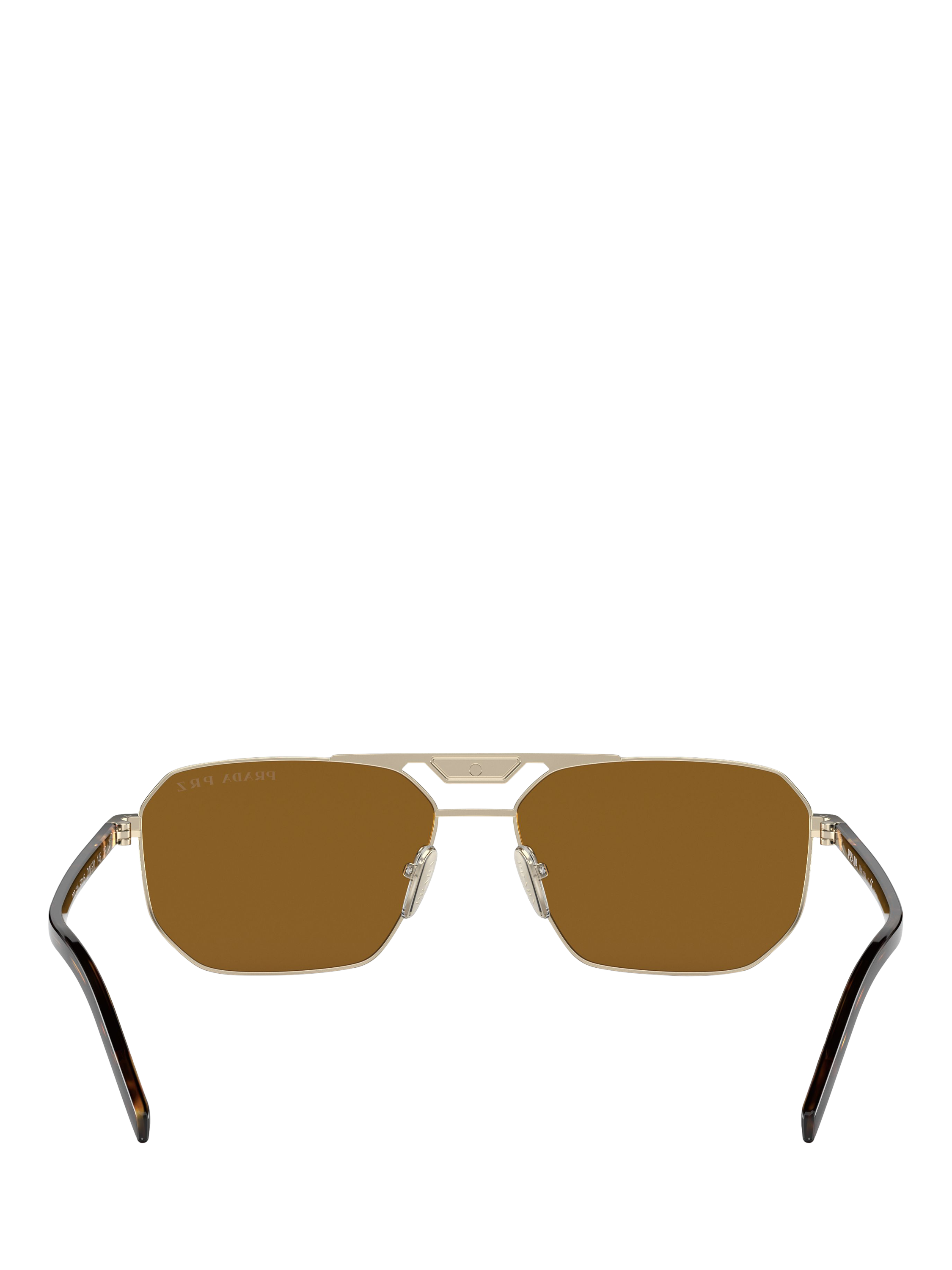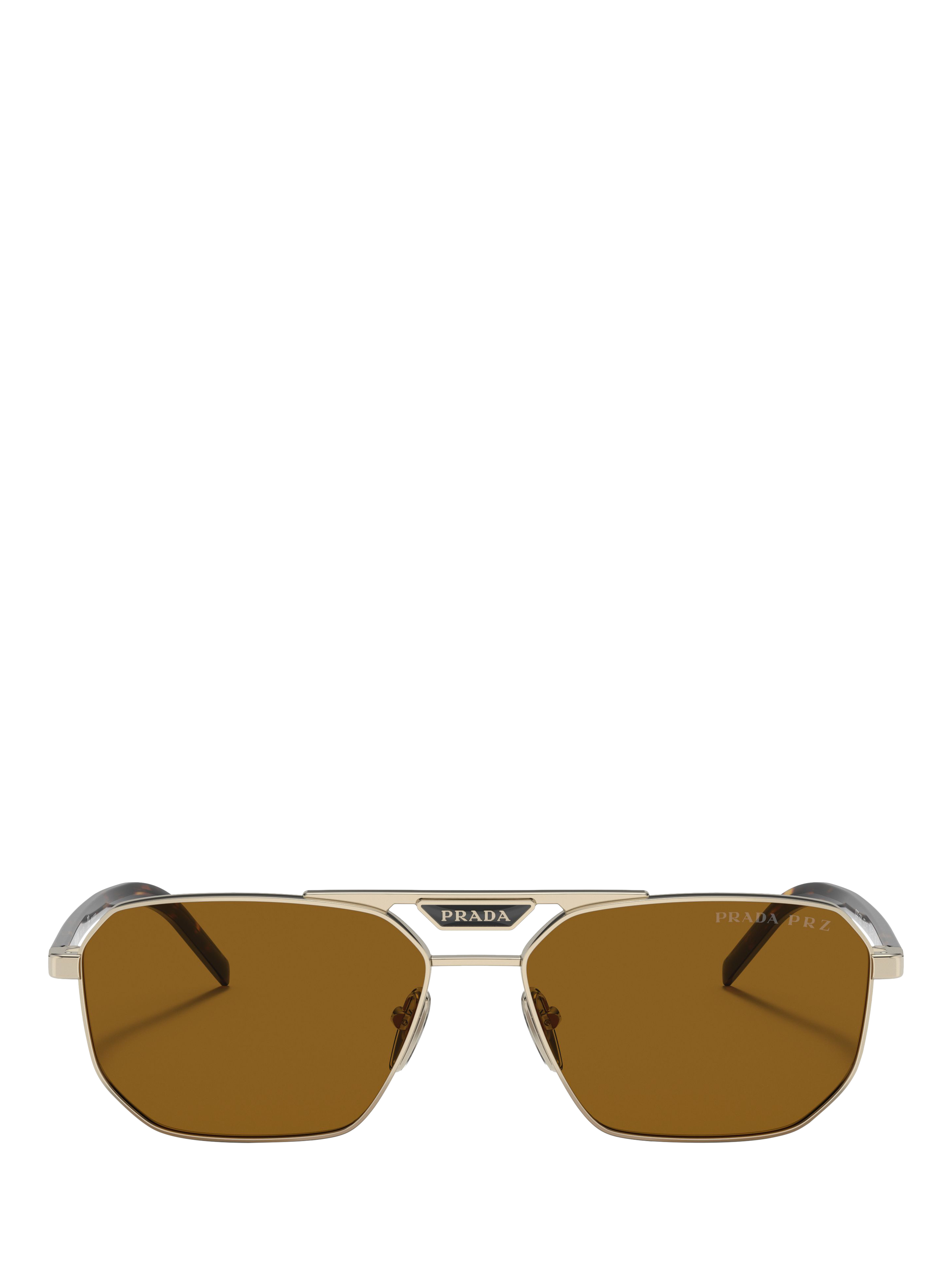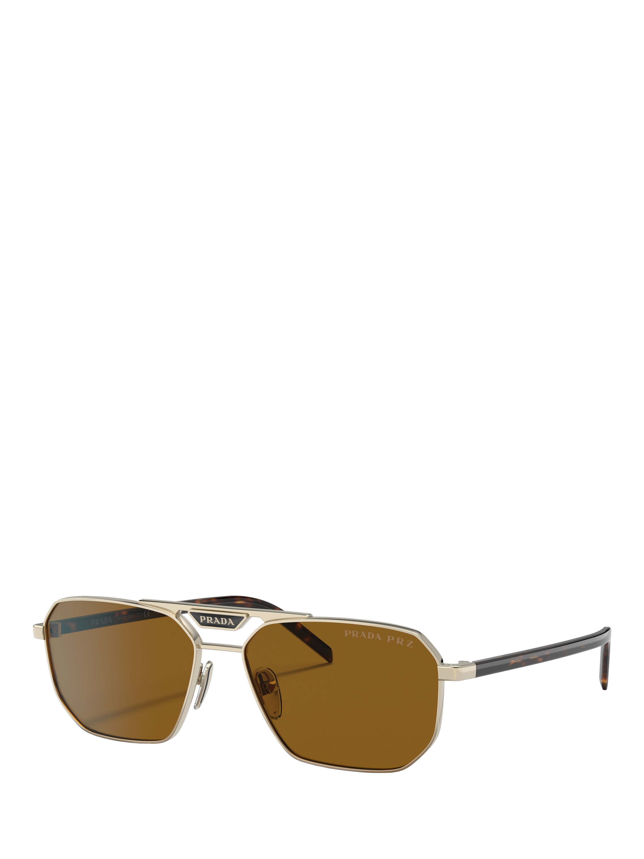 PradaPR 58YS Men's Polarised Rectangular Sunglasses, Pale Gold/Brown