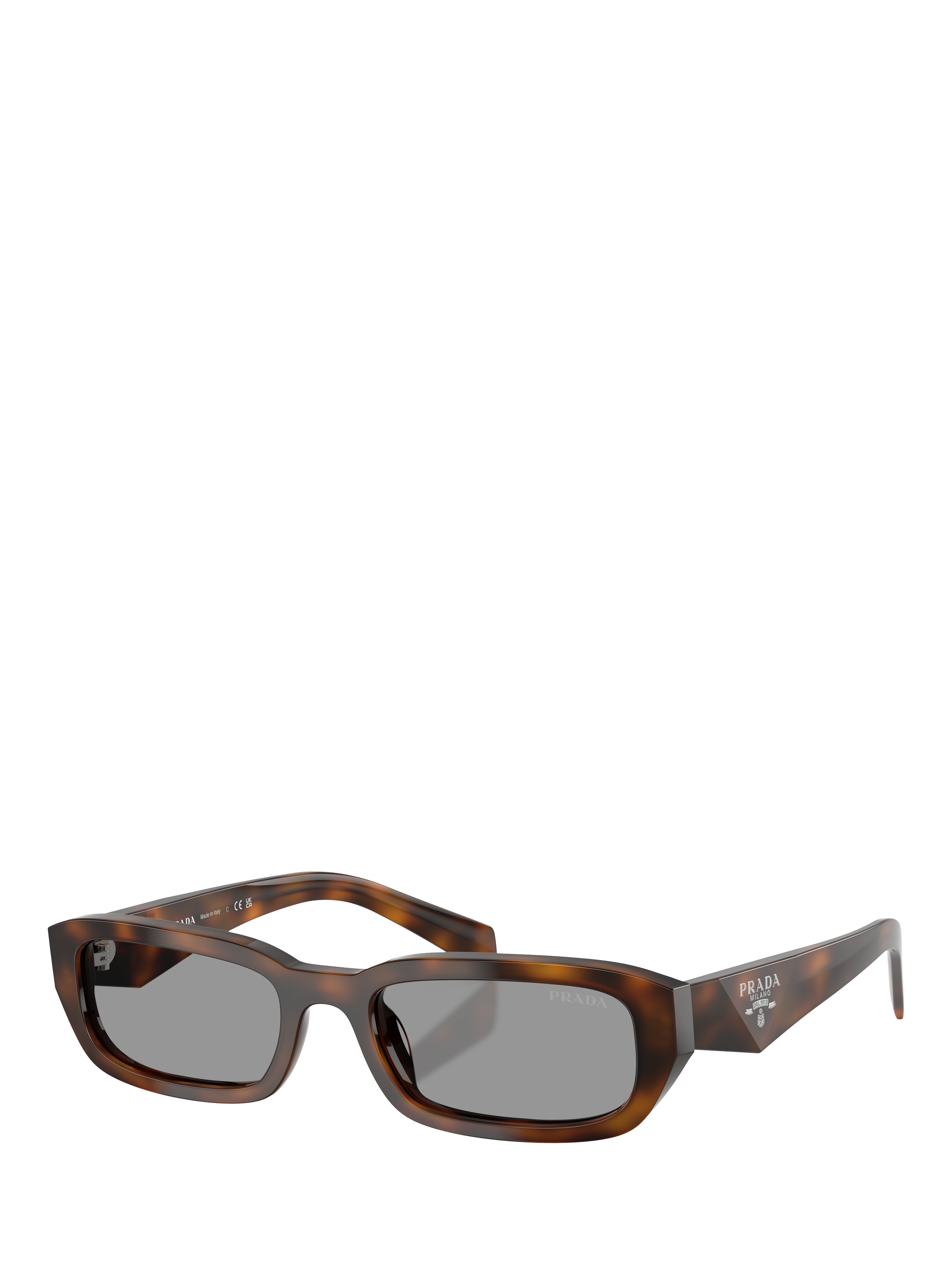 In a classic rectangular profile, these Prada sunglasses have a sturdy polyamide makeup that's both comfortable and impact resistant for everyday peace of mind. Complete with classic tinted lenses.