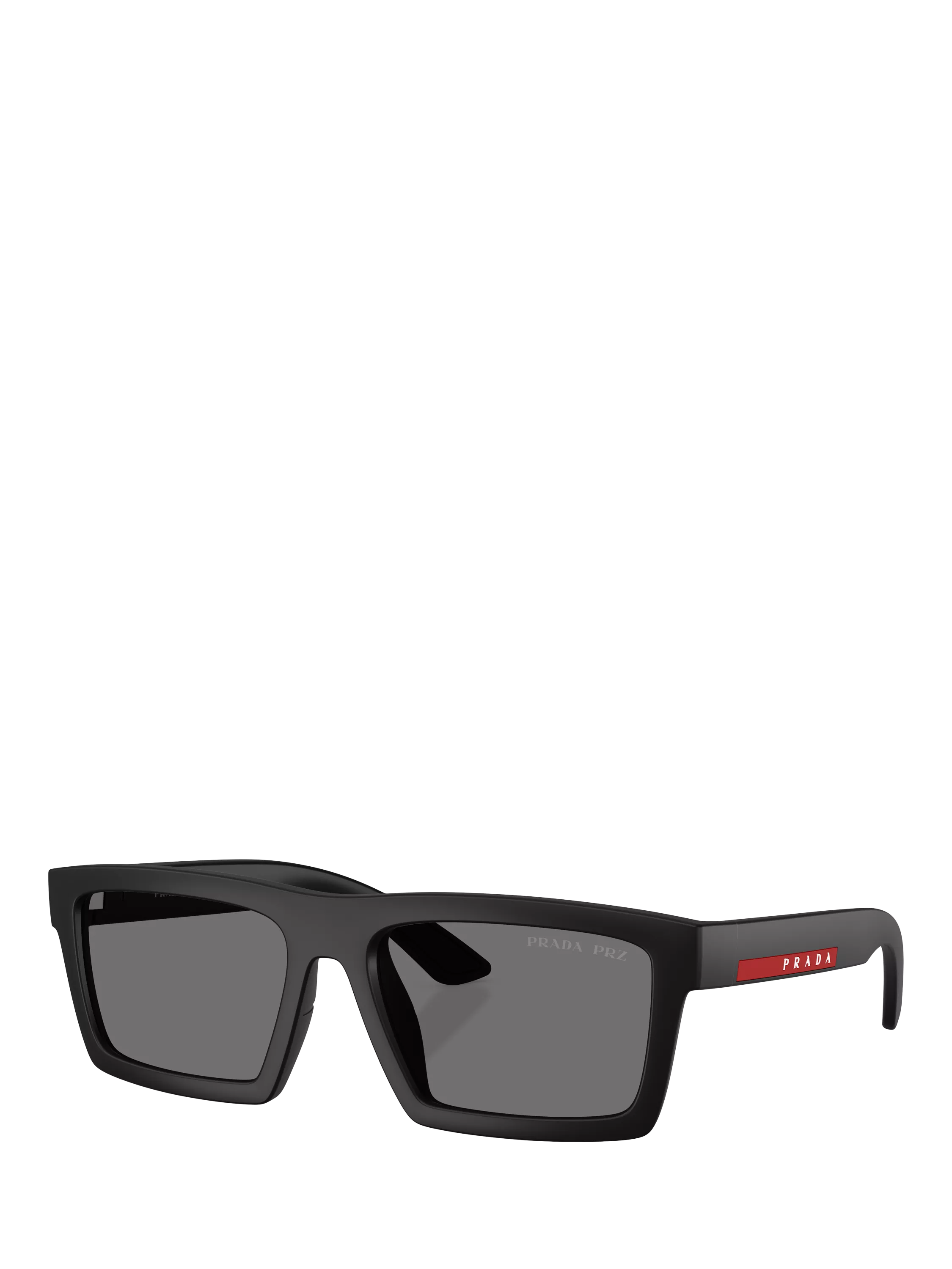 PradaPrada Linea Rossa PS A07S Men's Polarised Rectangular Sunglasses, Black/Grey