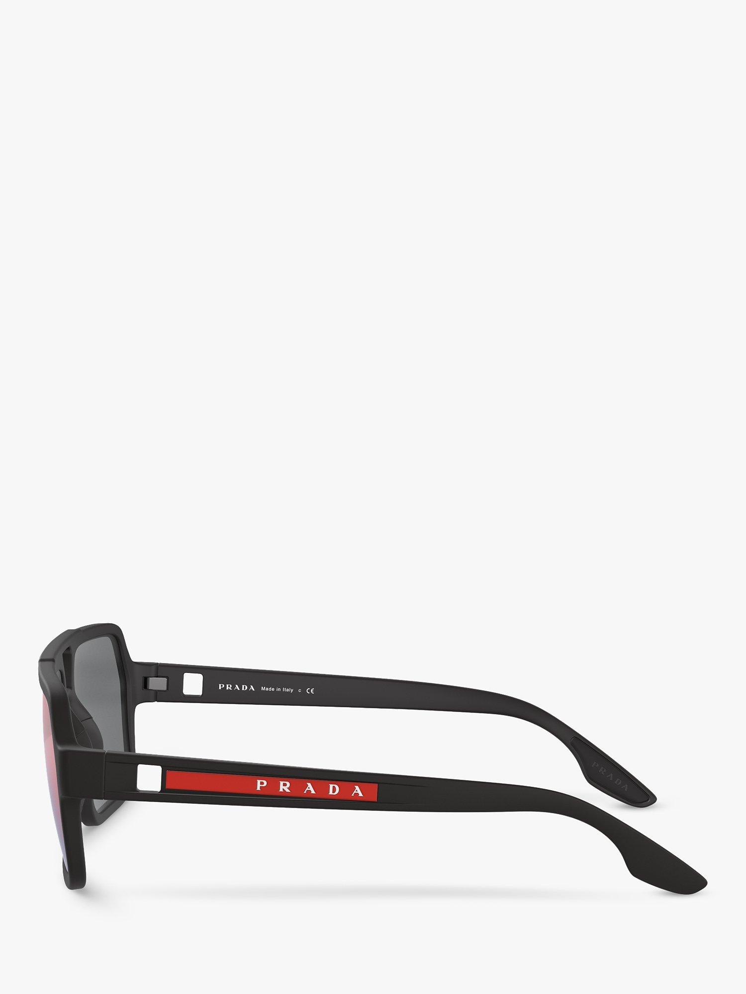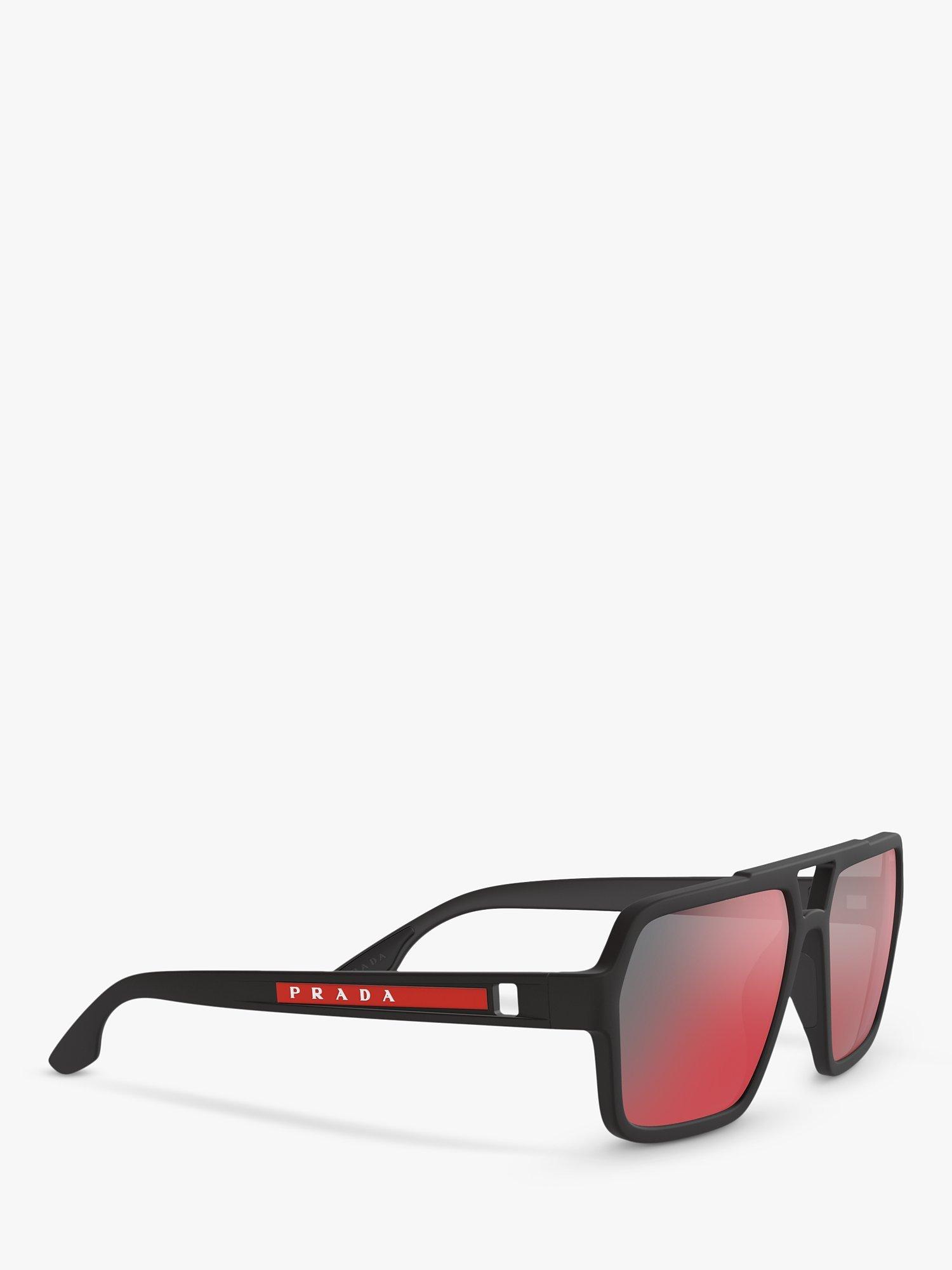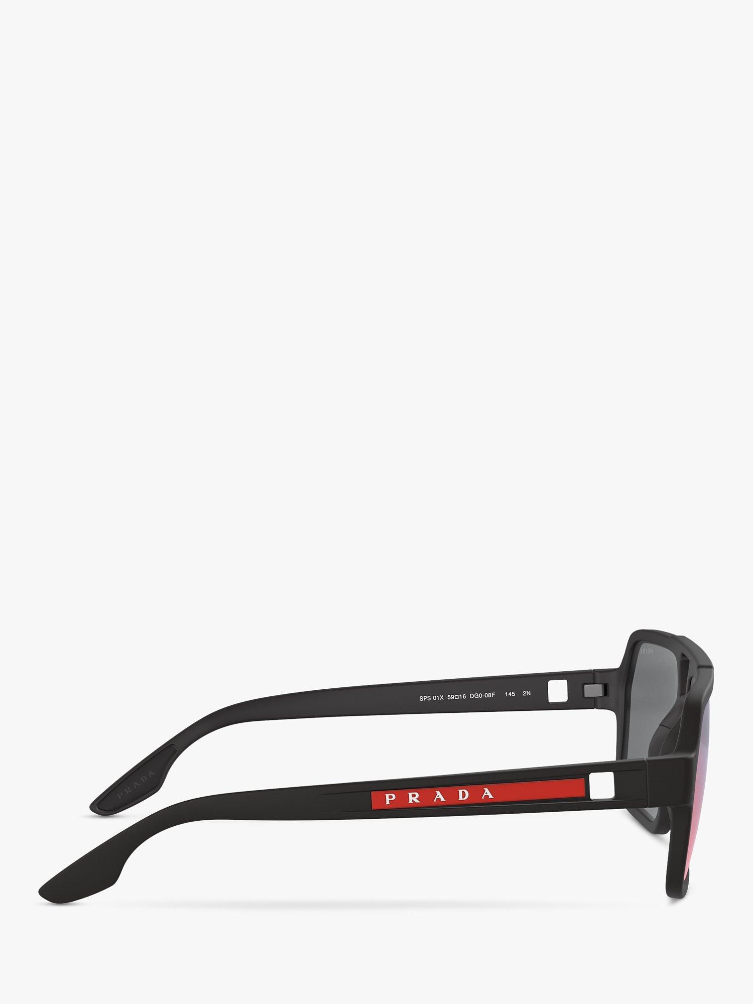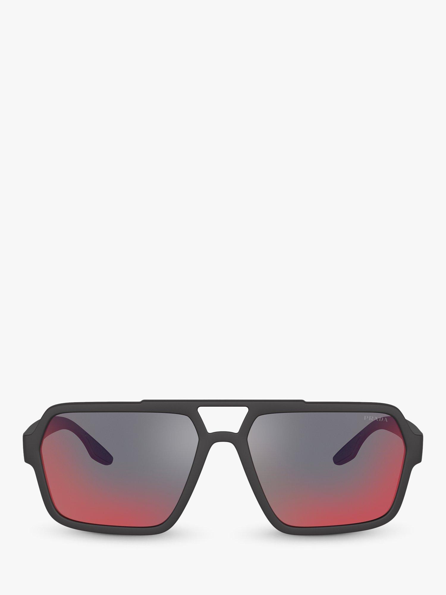 PradaPS 01XS Men's Rectangular Sunglasses, Black/Mirror Grey Pink