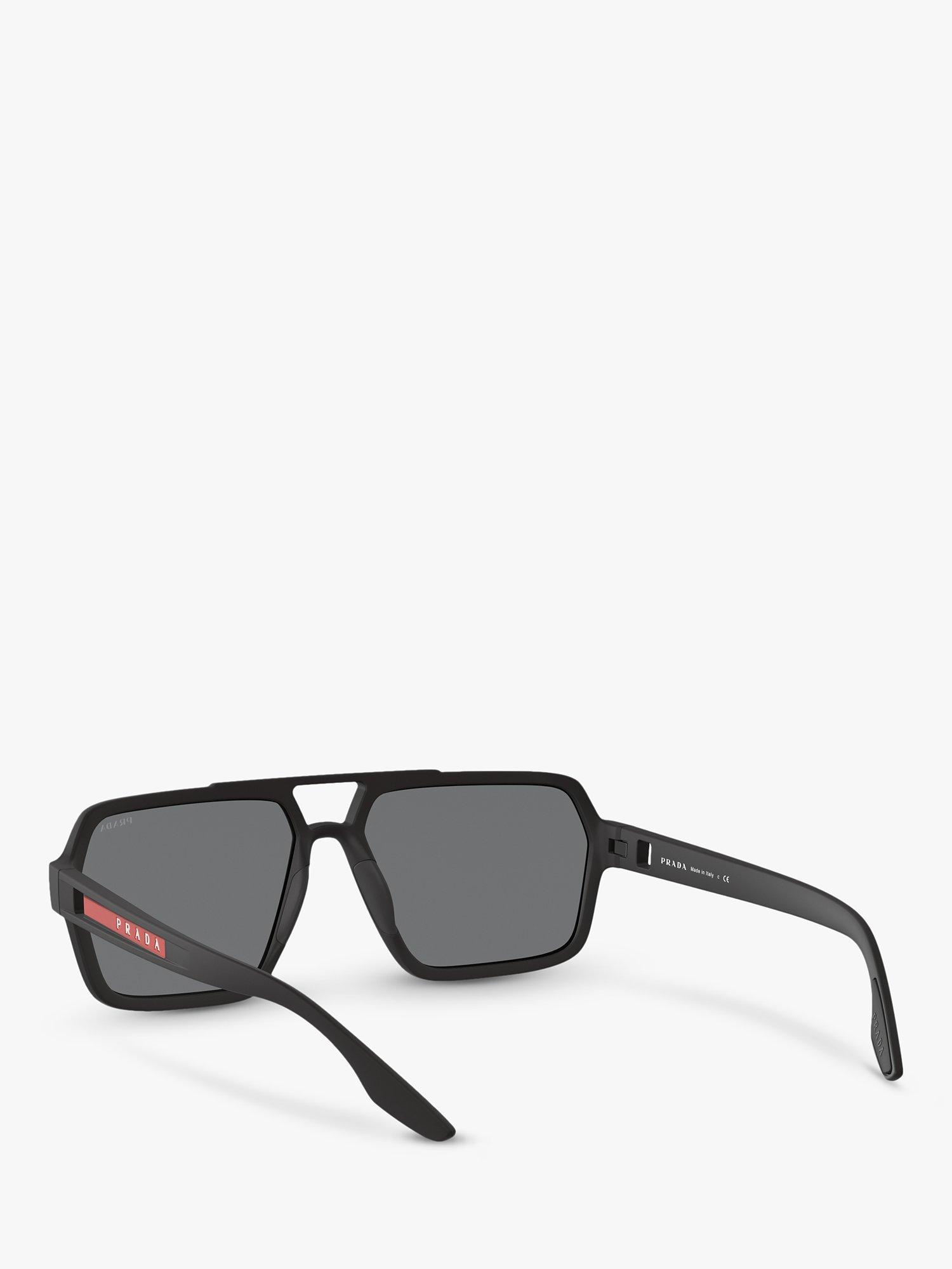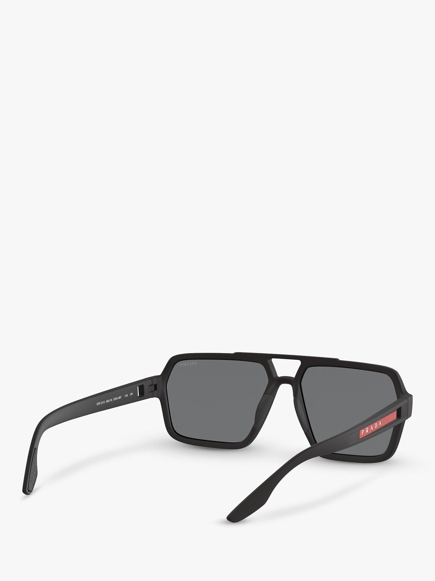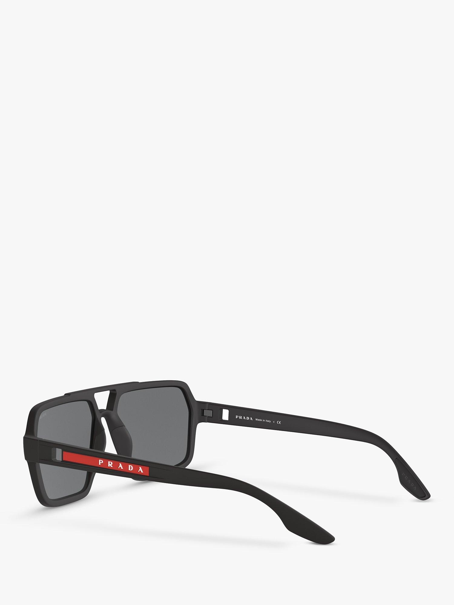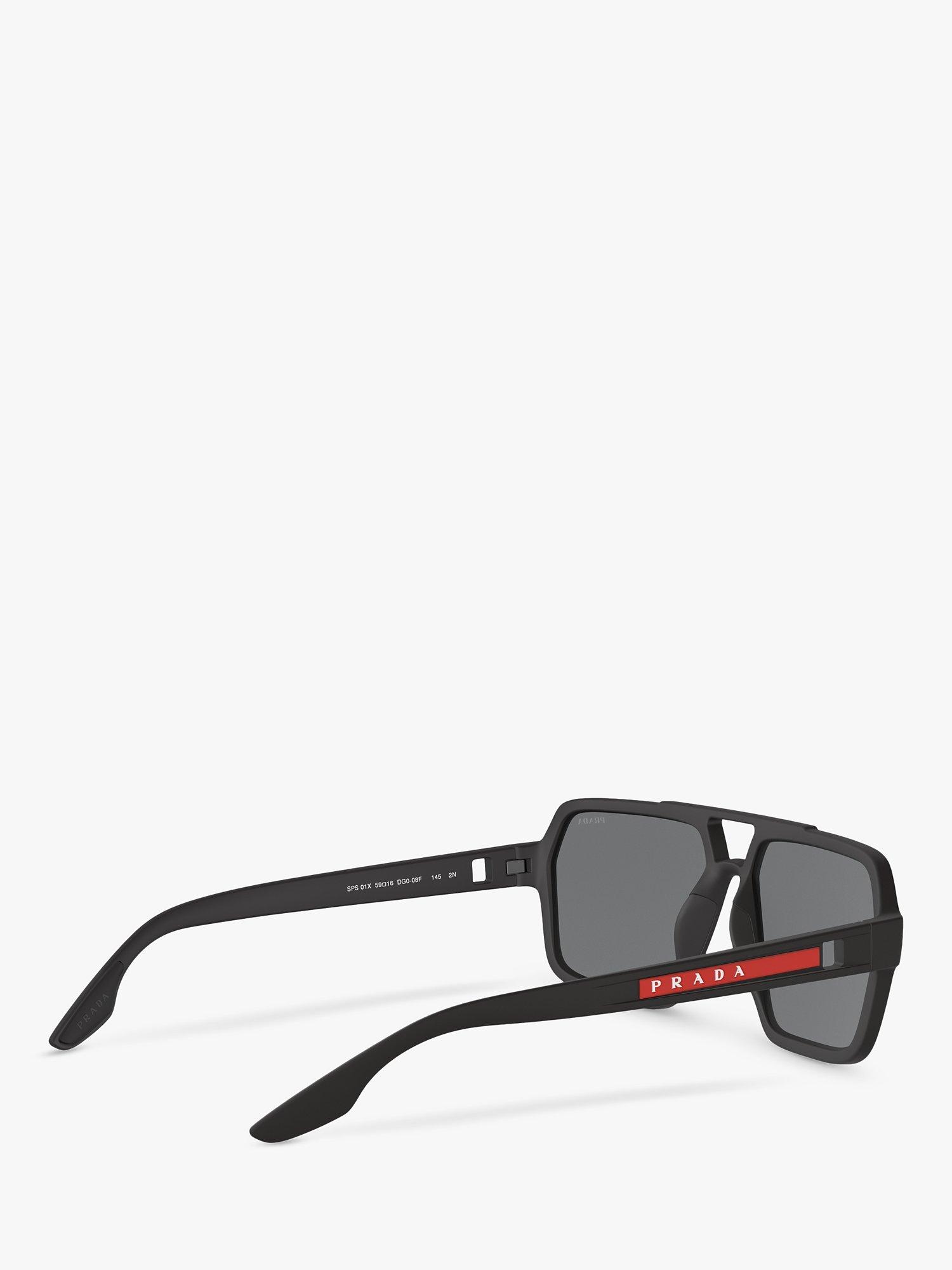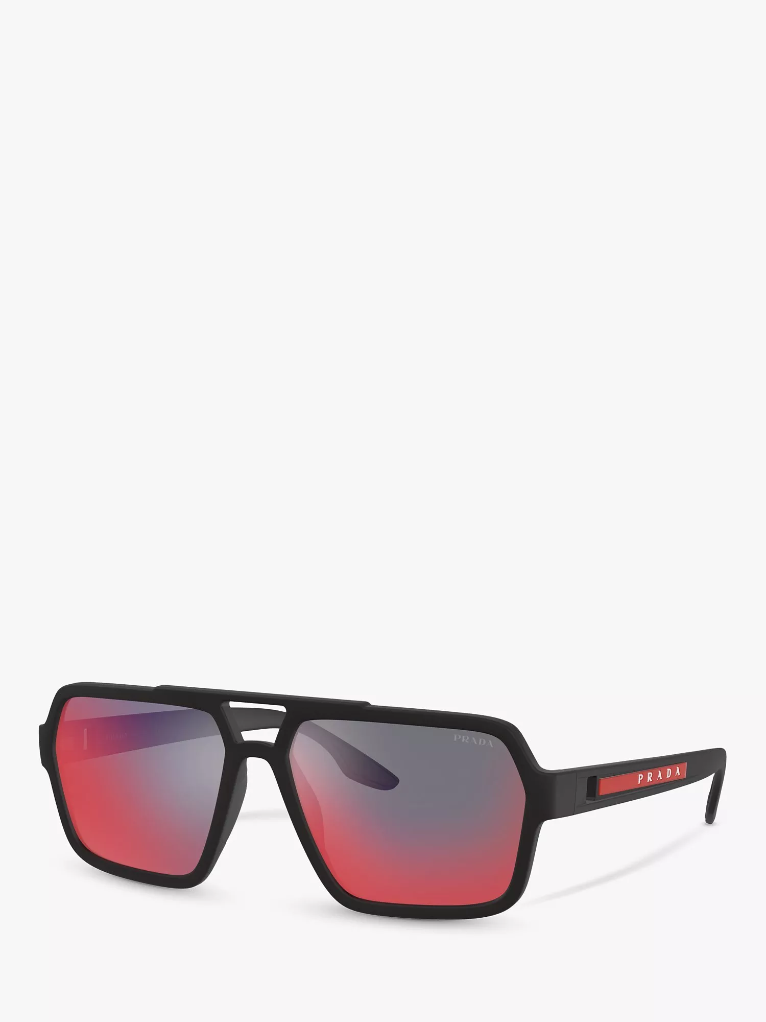 PradaPS 01XS Men's Rectangular Sunglasses, Black/Mirror Grey Pink