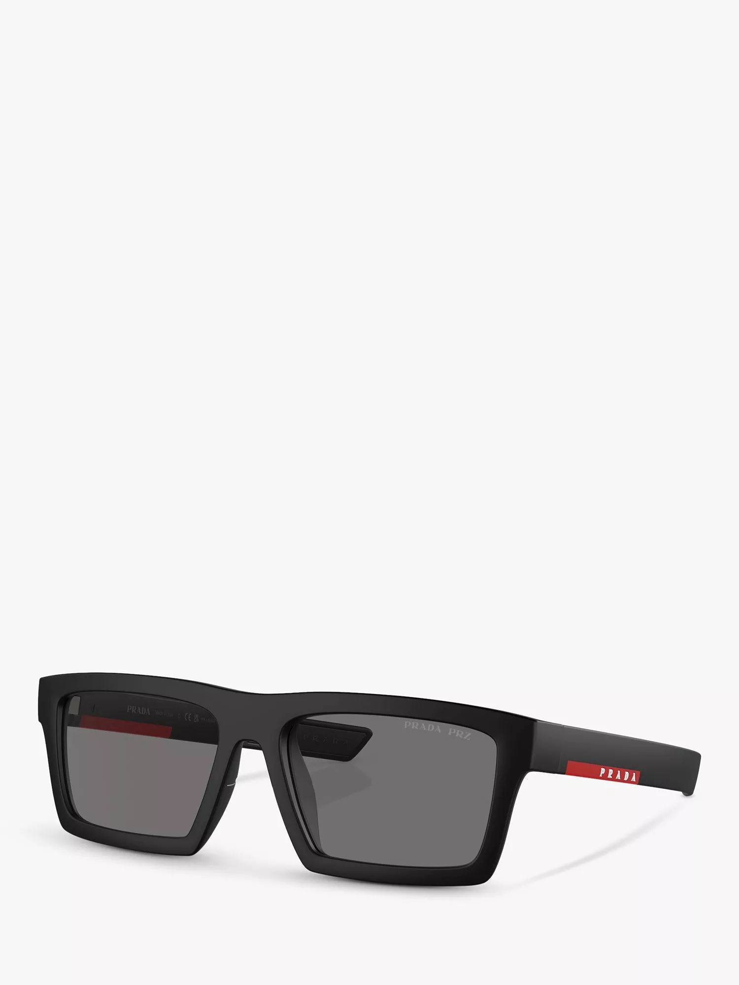 PradaPS 02ZS Men's Rectangular Polarised Sunglasses, Black/Grey