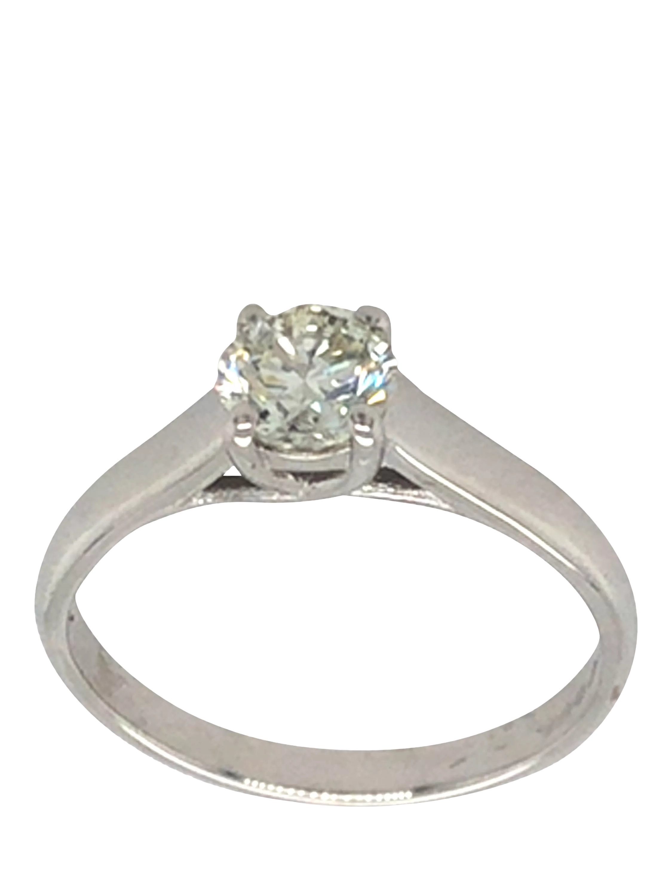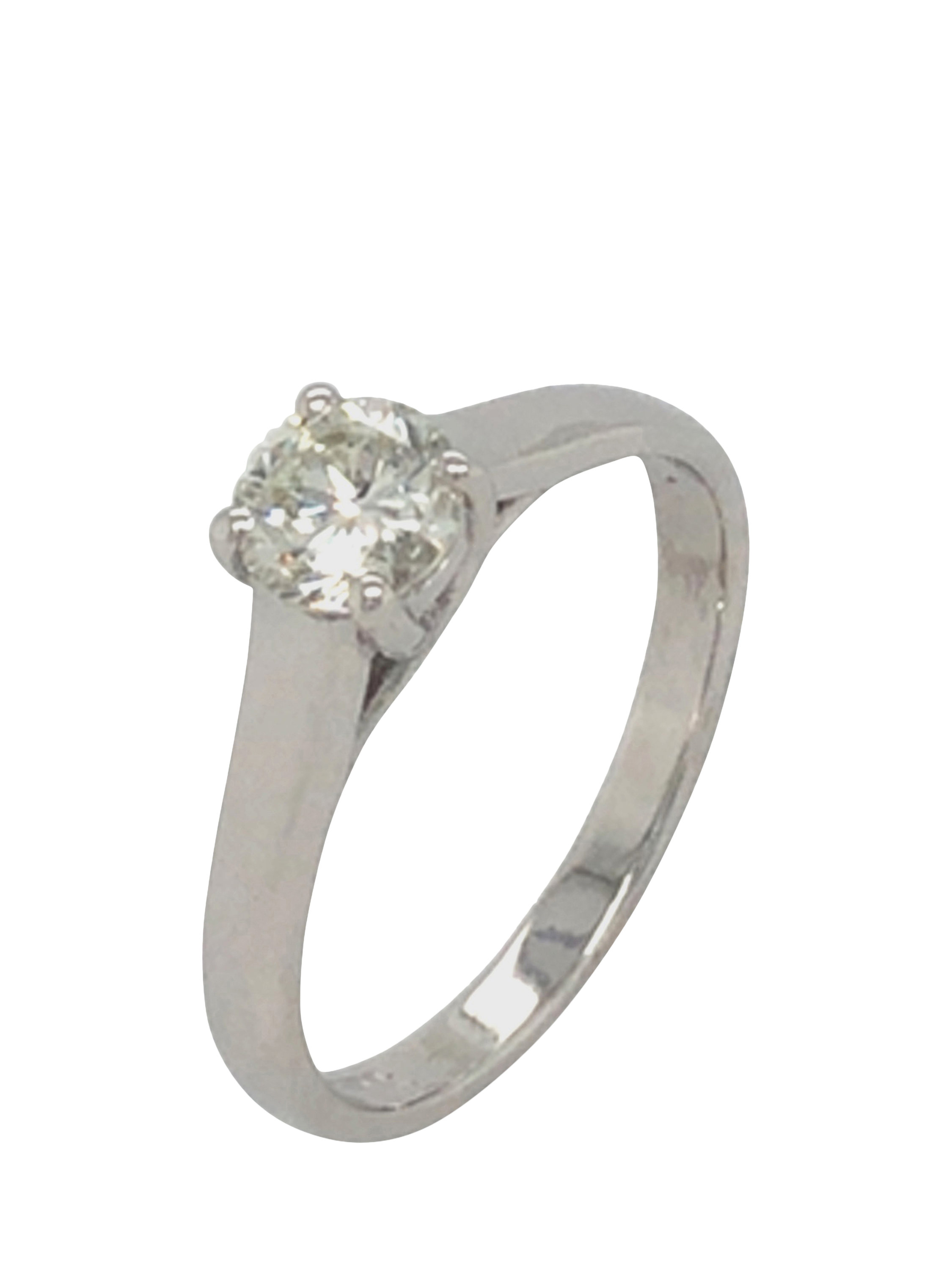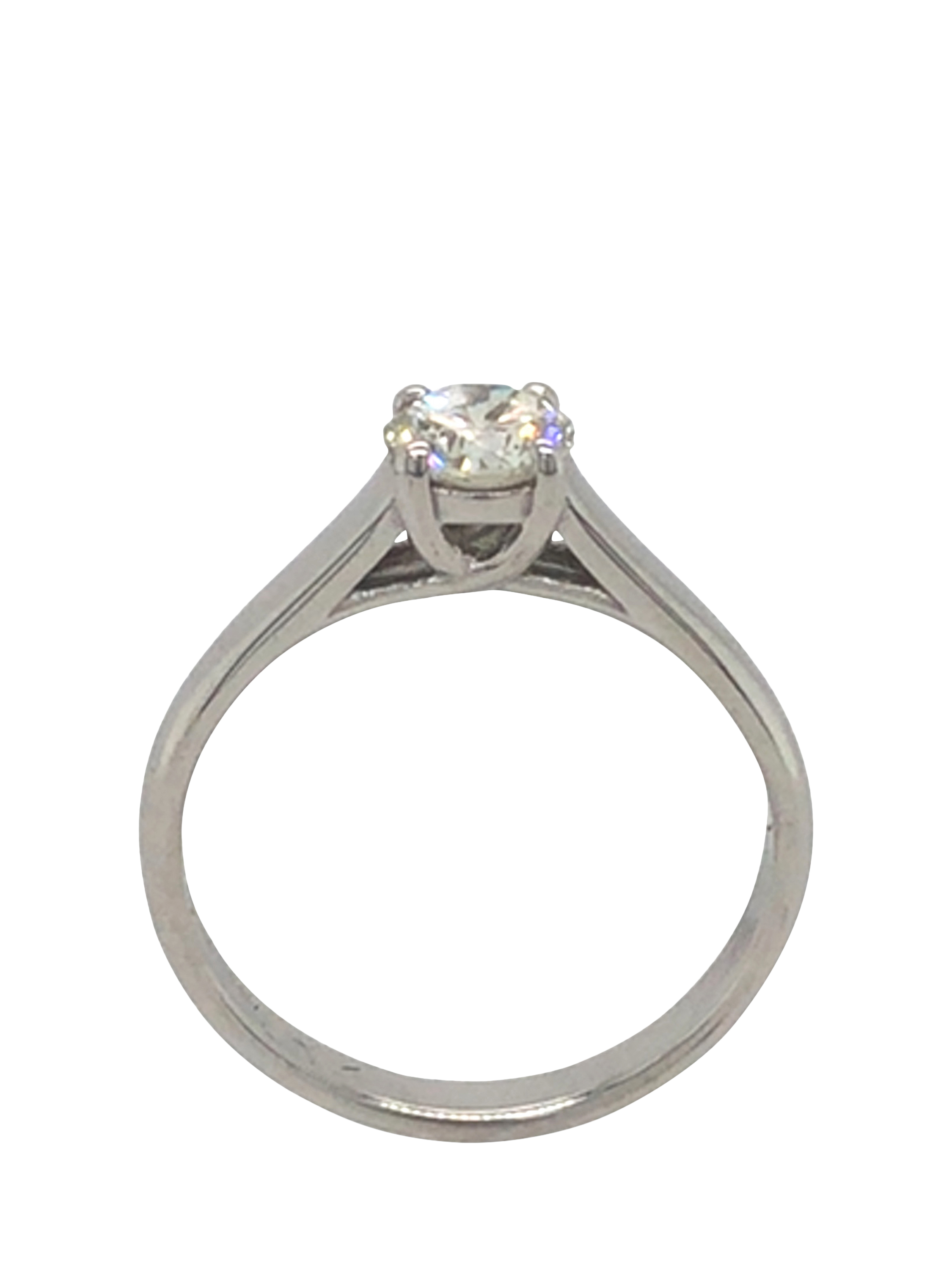 Pre-loved 18ct white gold single stone diamond claw set ring. Diamond is approx 0.63cts. Gram weight: 3.1 gms.
