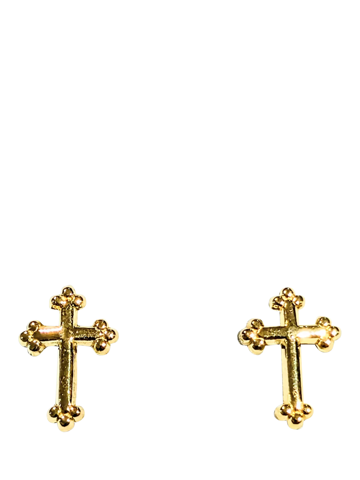 Pre-loved 9ct yellow gold cross stud earrings, presented by L & T Heirlooms. Gram weight is 0.206. Suitable for pierced ears only. This piece comes boxed, perfect for gifting.
