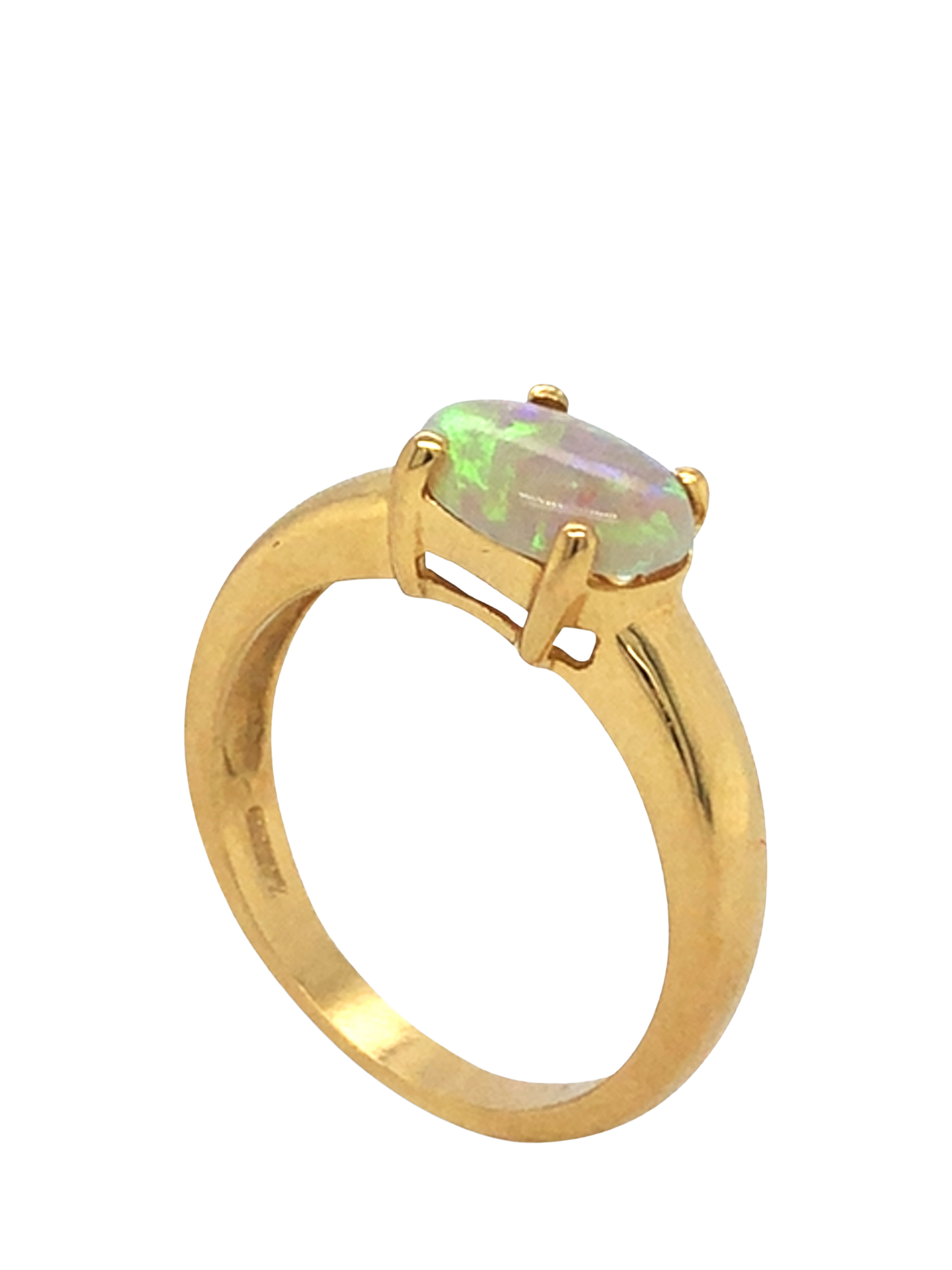 Vintage Fine JewelleryPre-loved 9ct Yellow Gold Single Stone Oval Opal Ring, O