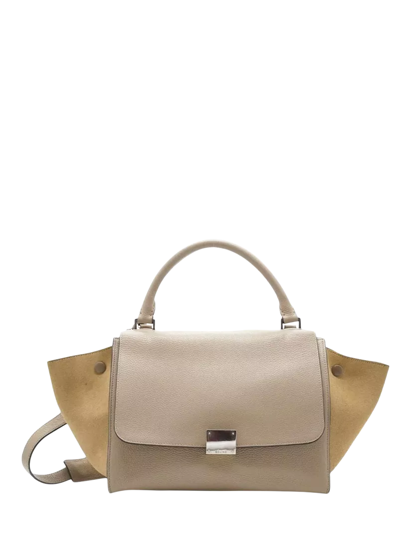 Pre-ownedPre-loved CELINE Trapeze Leather and Suede 2-Way Bag, Neutral