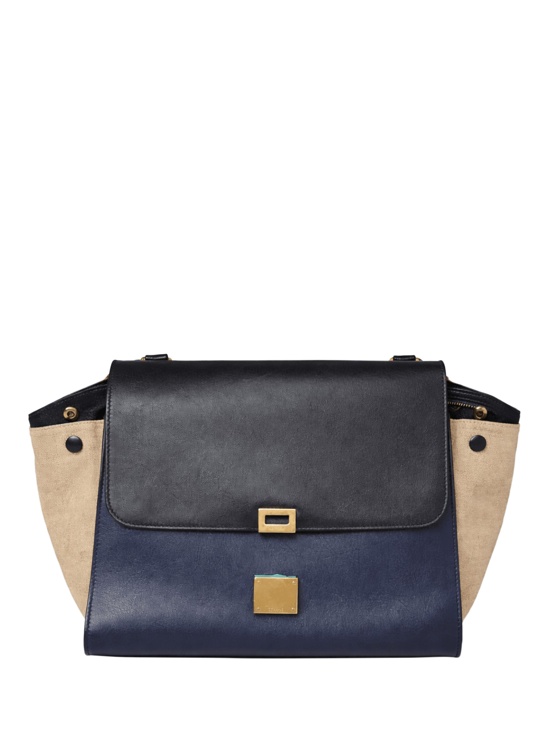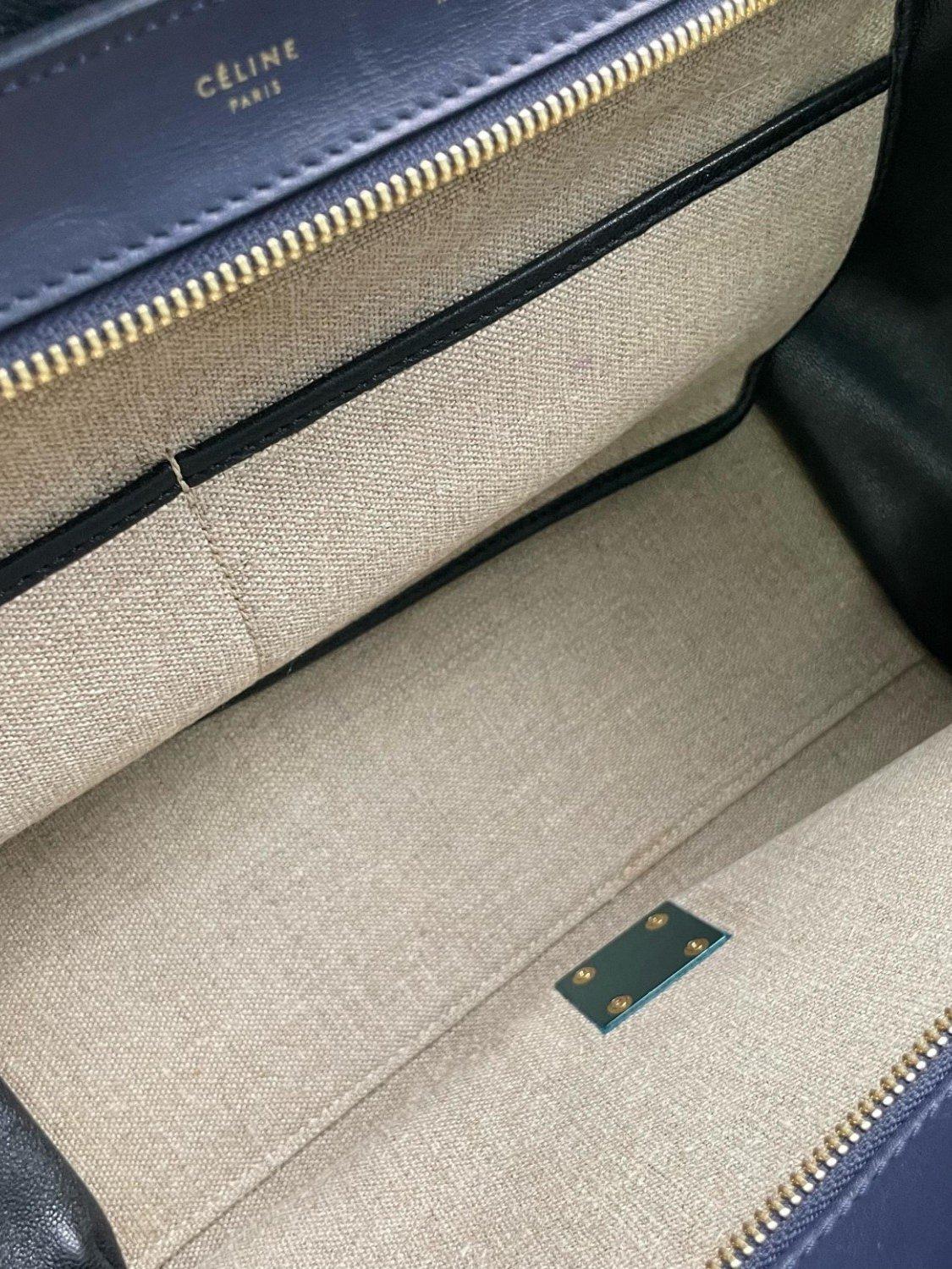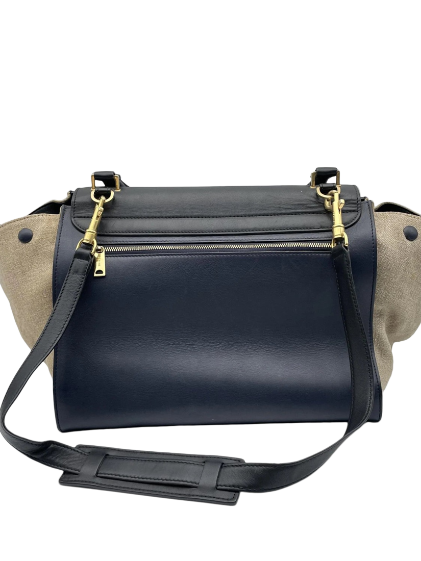 Pre-loved CELINE navy and neutral Trapeze leather handbag with gold hardware. This bag has a single compartment, 2 patch pockets.