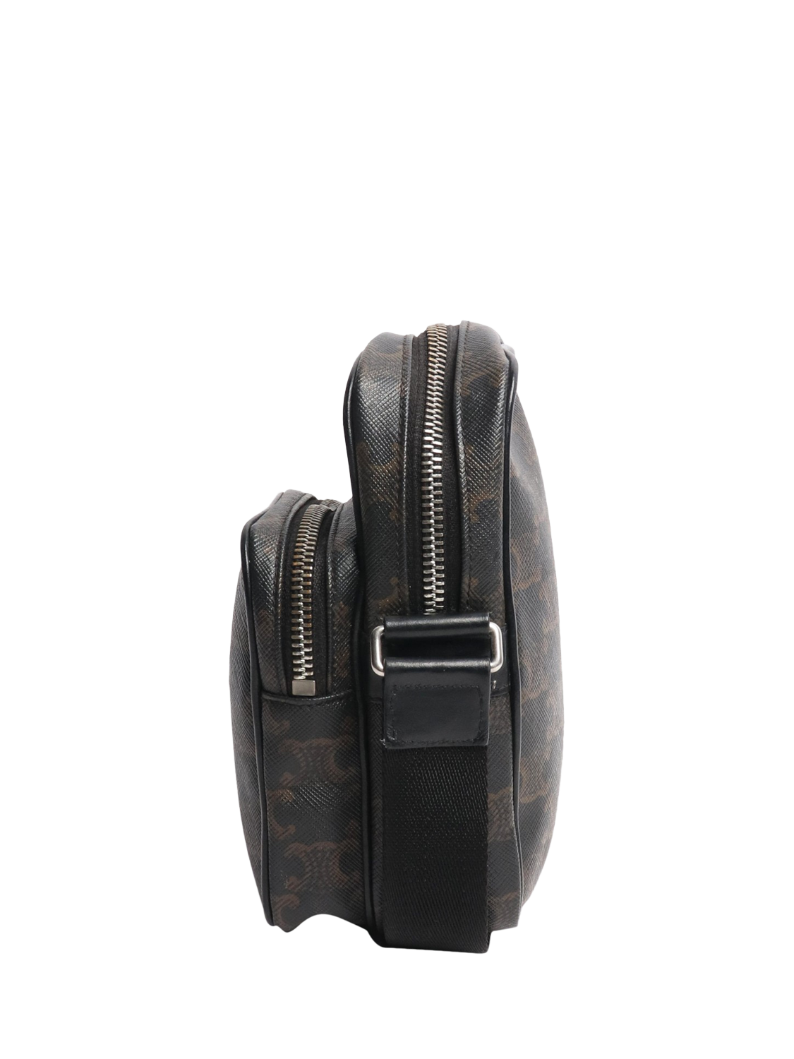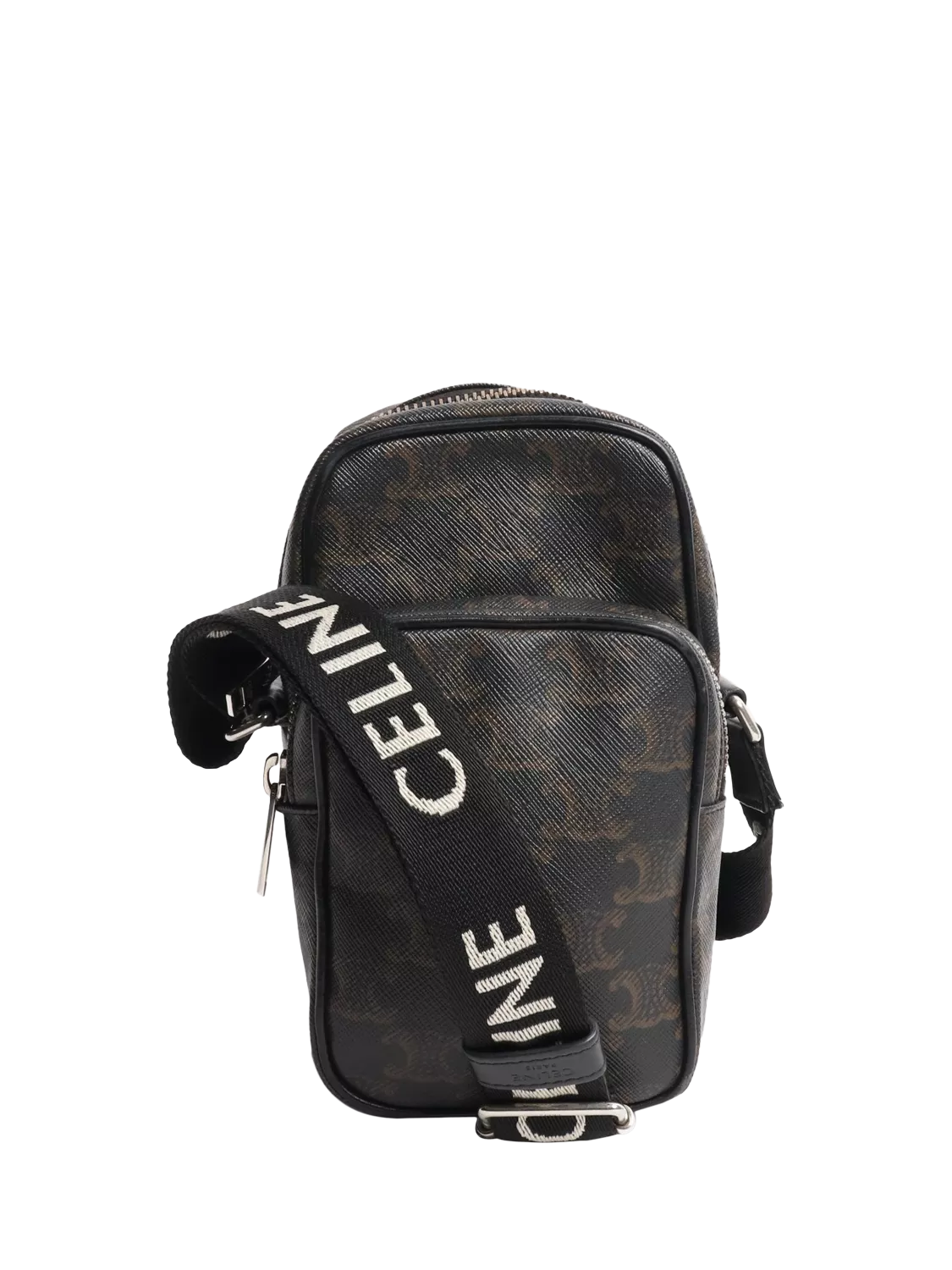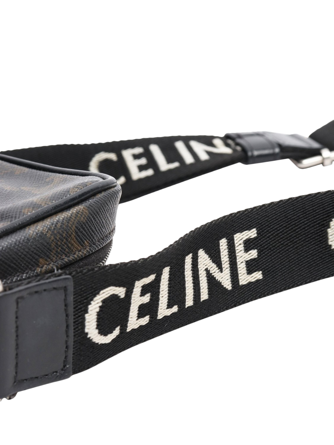 Pre-loved CELINE pouch bag with silver hardware. This bag has two zipped compartments and an adjustable crossbody strap.