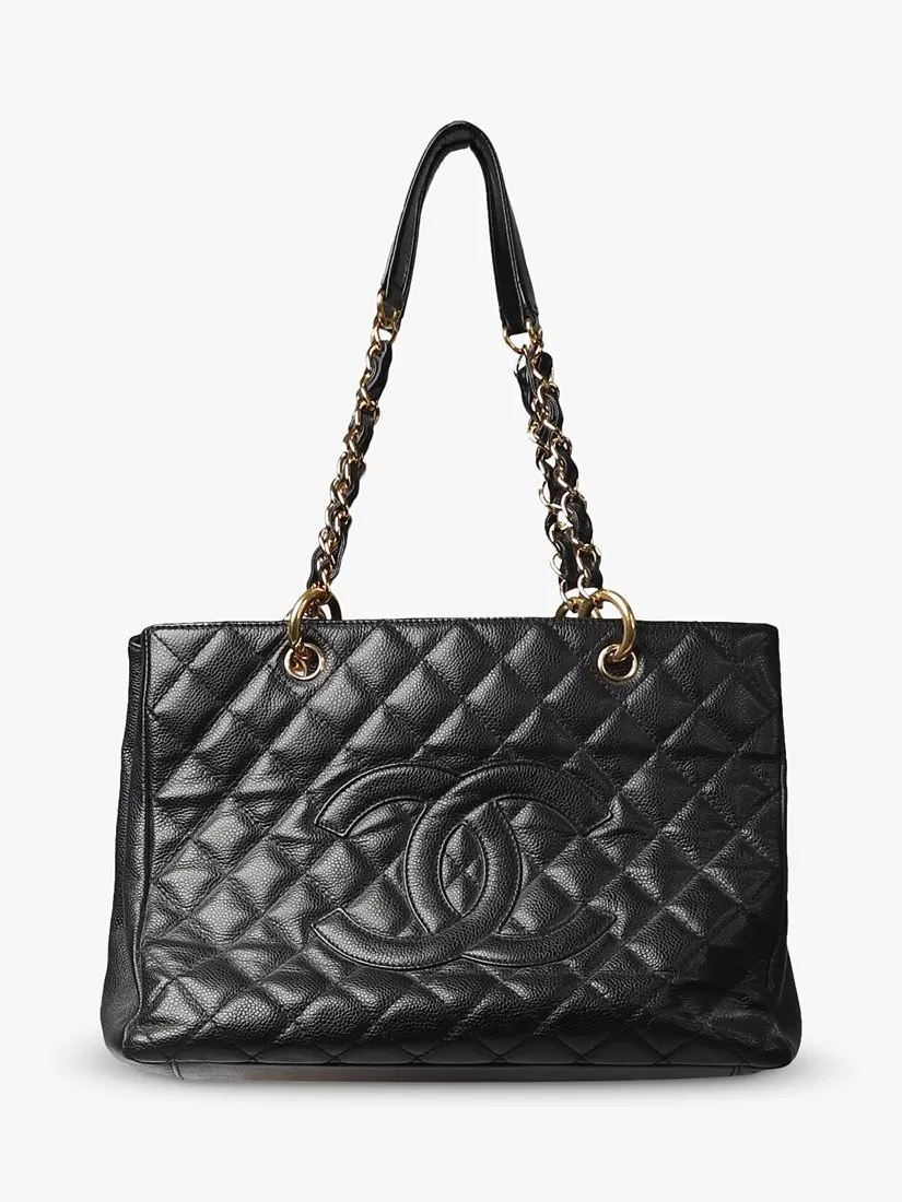 Pre-loved CHANEL black 2008-2009 Caviar leather GST bag with gold hardware.