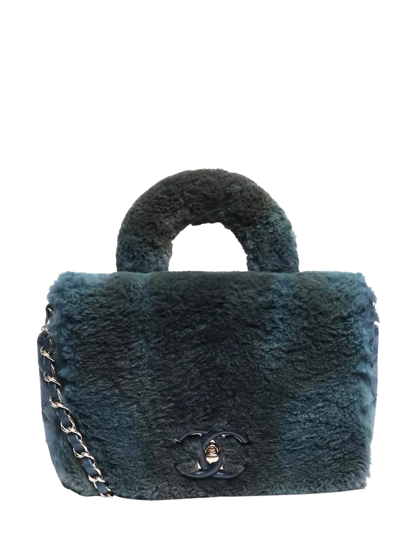 Pre-ownedPre-loved CHANEL 2017 Fur Top Handle Bag, Blue/Green