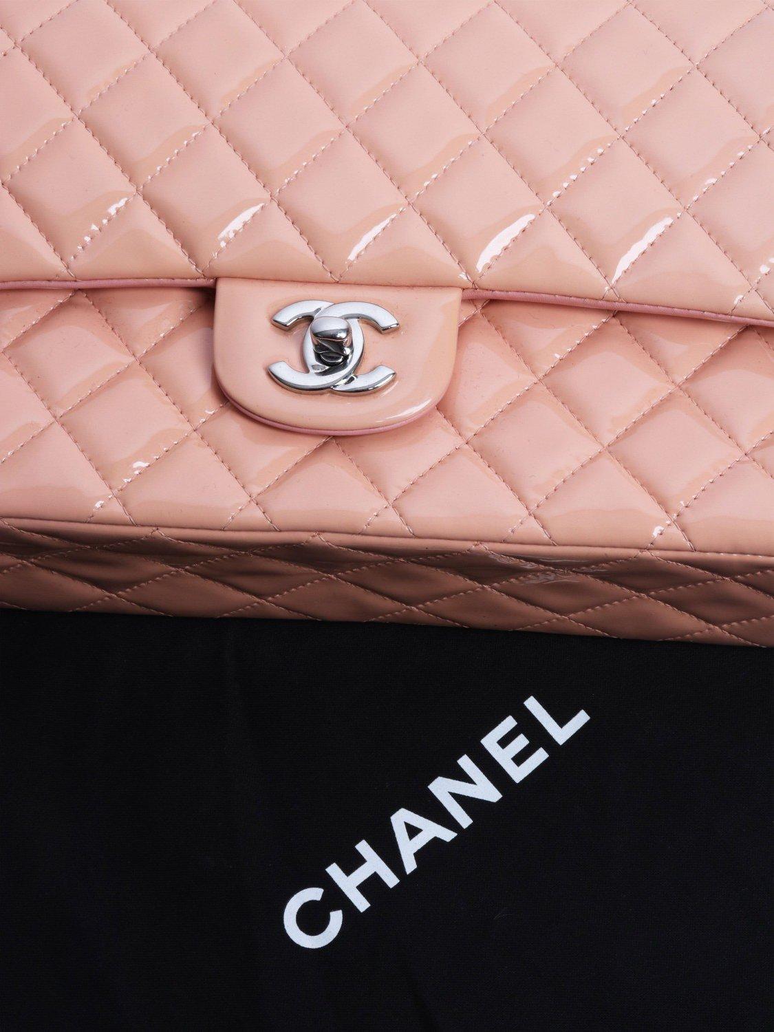 Pre-ownedPre-loved CHANEL Patent Leather Double Flap Bag, Pink