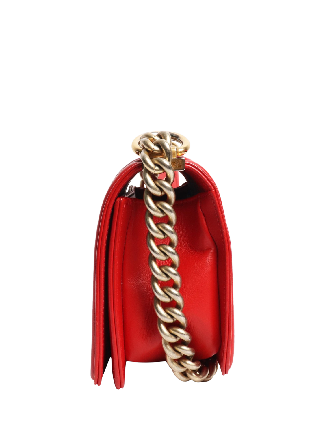 Pre-ownedPre-loved CHANEL Python Gold Hardware Boy Bag, Red