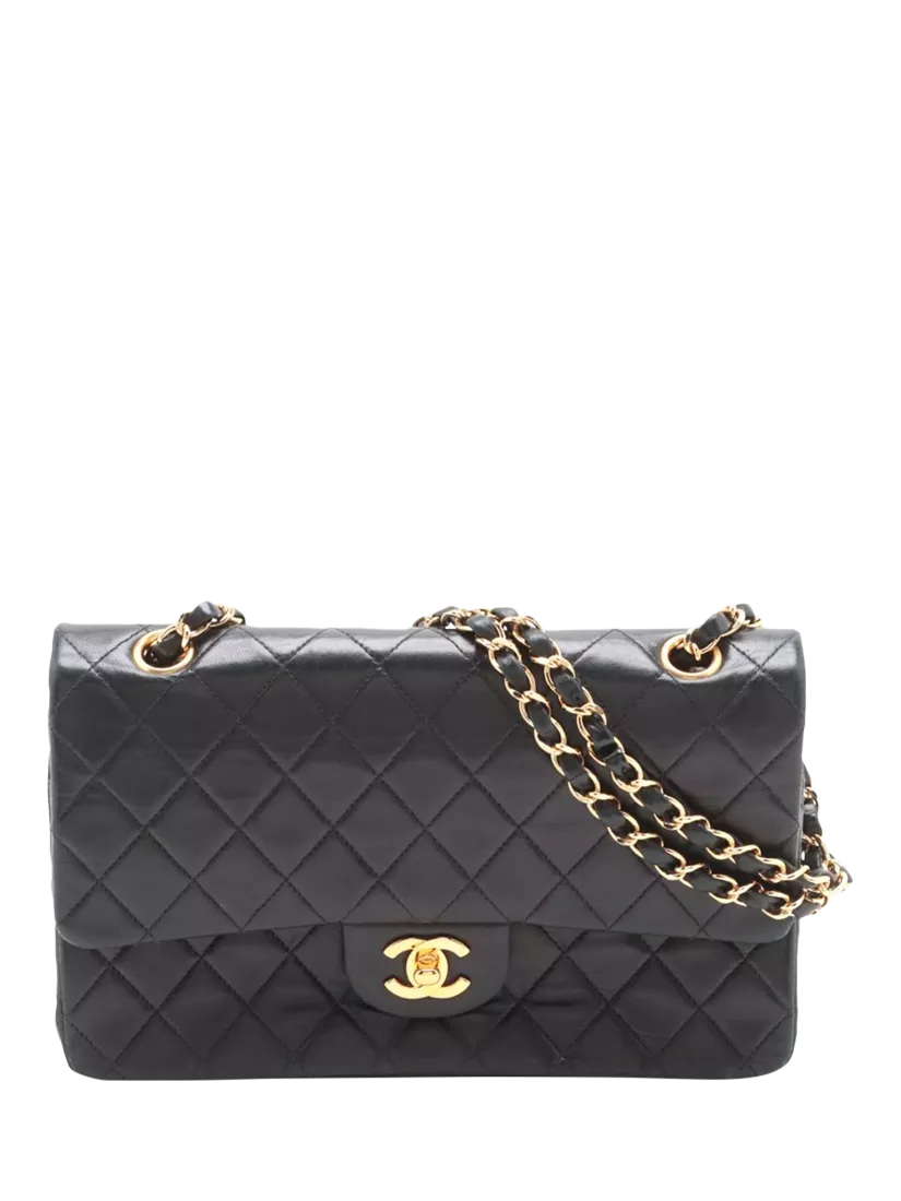 Pre-ownedPre-loved CHANEL Vintage 2000 Medium Lambskin Classic Double Flap Shoulder Bag, Black