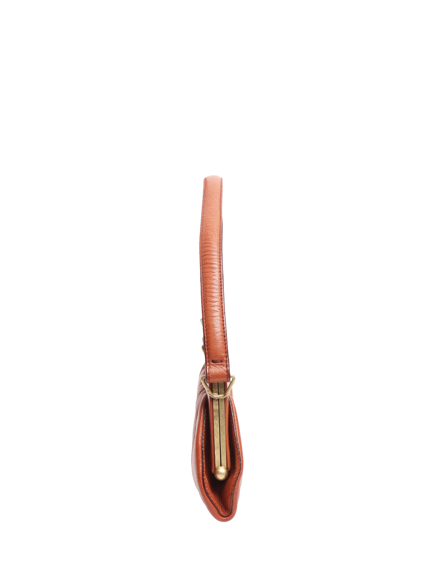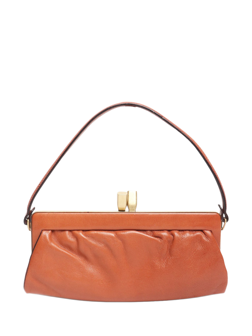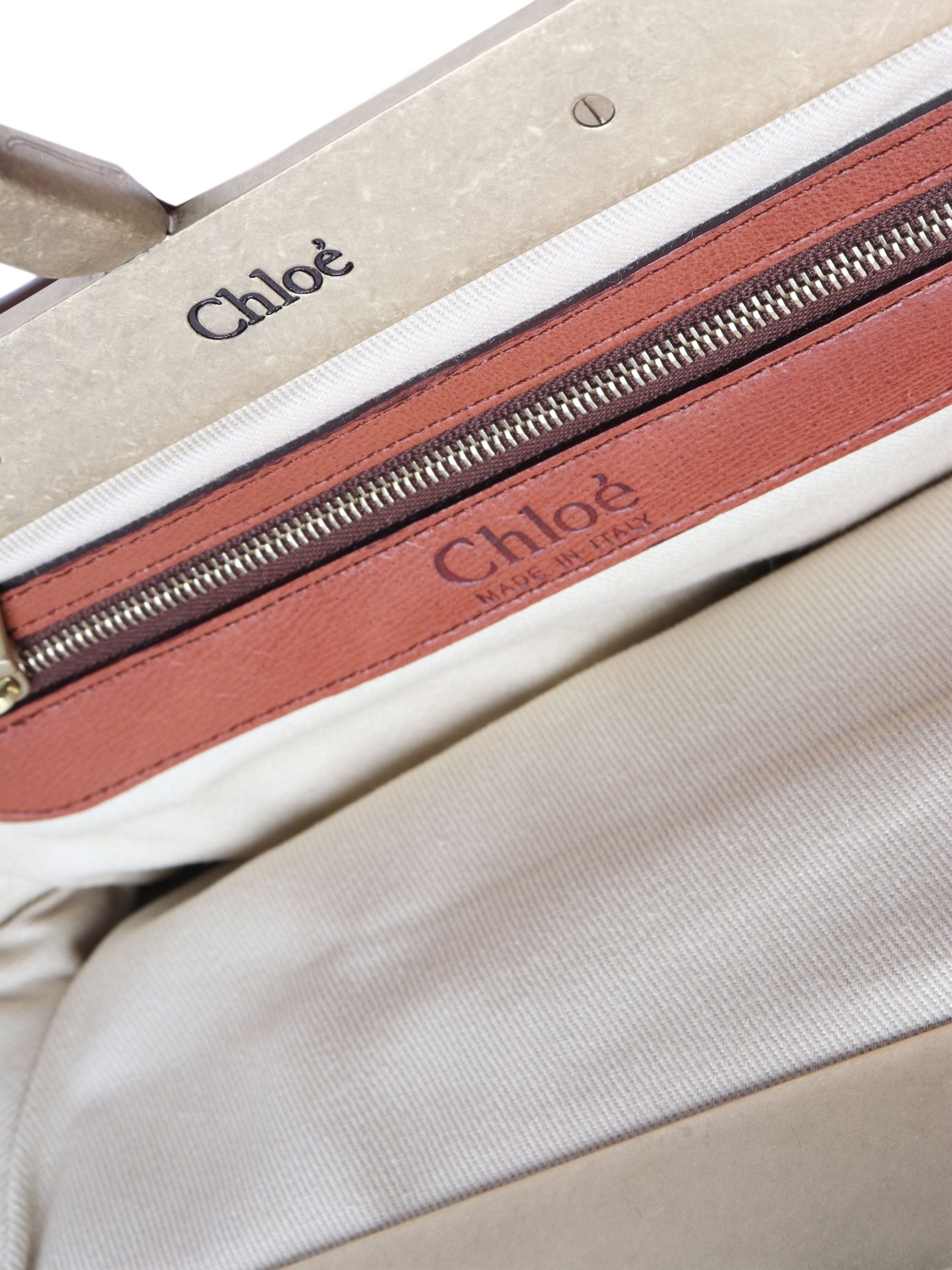 Pre-loved Chloé tan leather mini bag with gold hardware. This bag has a kiss-lock closure and a main compartment with an interior zipped pocket.