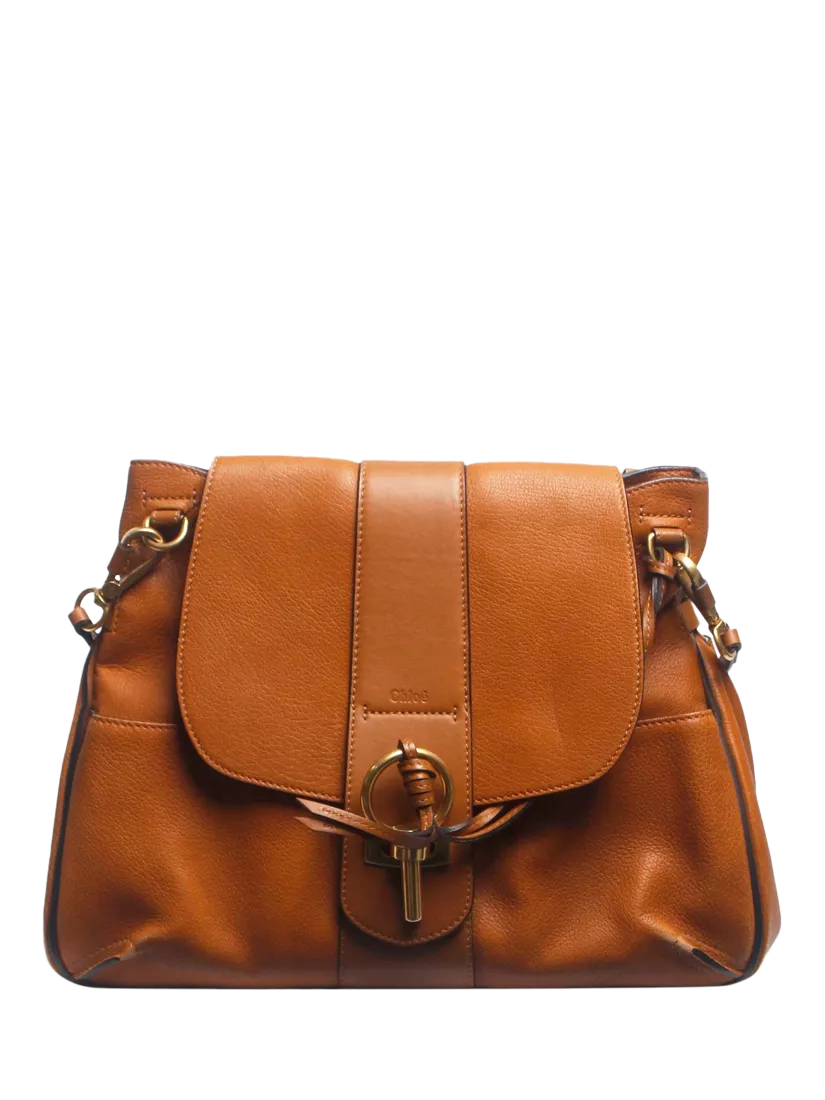 Pre-loved Chloé brown Lexa leather bag with gold hardware.