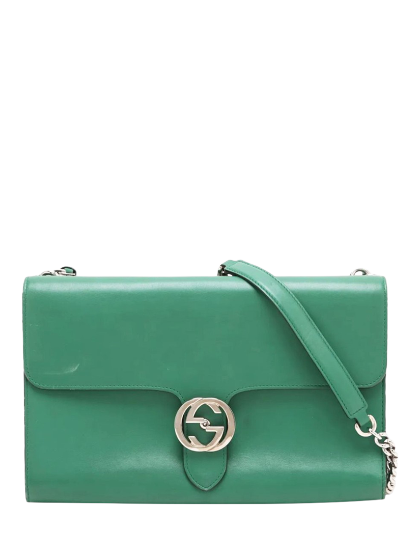 Pre-ownedPre-loved GUCCI Interlocking G Leather Chain Shoulder Bag, Green