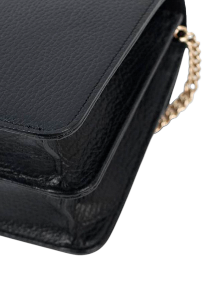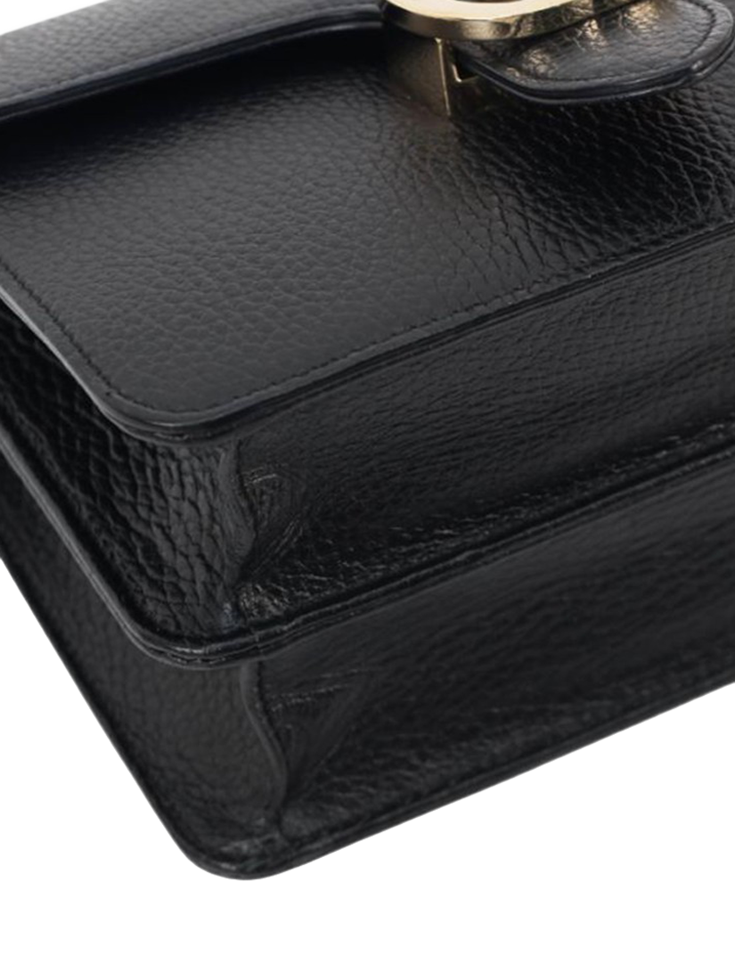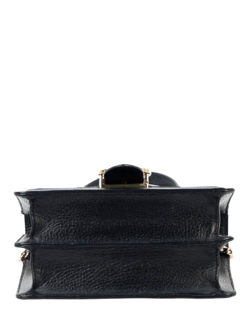 Pre-loved GUCCI black Interlocking G leather shoulder bag with gold hardware. This bag has a partitioned compartment with an interior patch pocket.