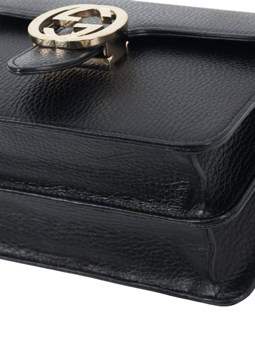 Pre-ownedPre-loved GUCCI Interlocking G Leather Shoulder Bag, Black