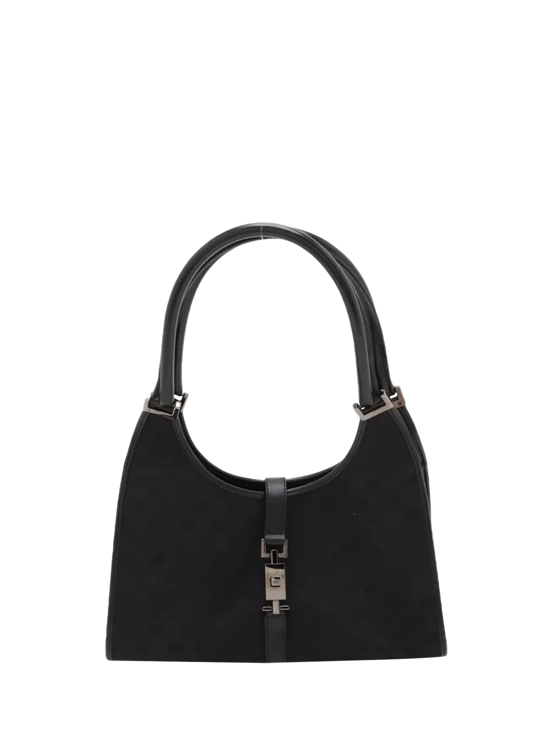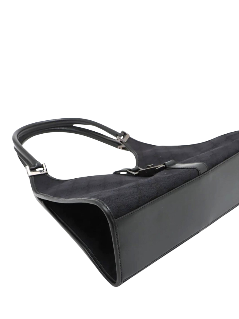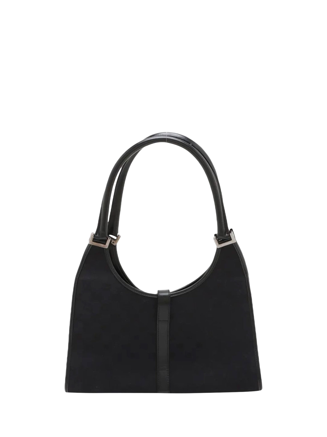 Pre-ownedPre-loved GUCCI Jackie Silver Hardware Canvas Shoulder Bag, Black